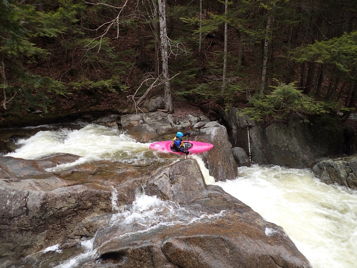 Boof (IV). Just downstream is a very nice boof down the left over a bit of a hole in a walled out area. At high flows this spot could potentially get dicey. But the boof is excellent so I think you would just sail right over. In 2015 it was made a little harder by a sketch log jam just downstream... but I am sure that will wash away.