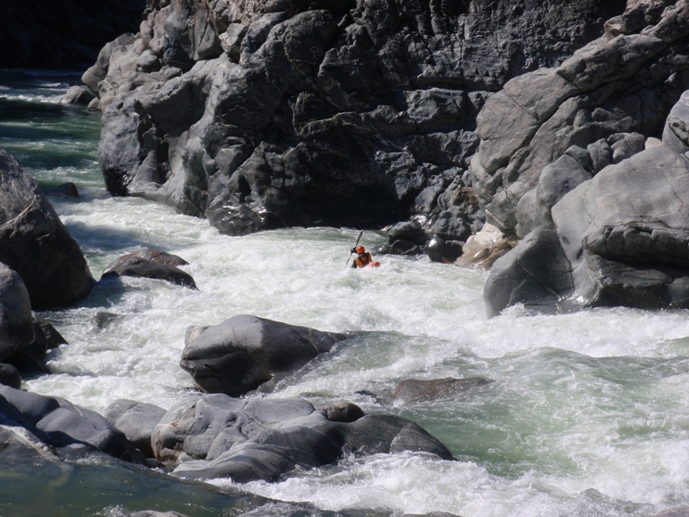 The day was sweet. This run is a step up from Burnt Ranch contrary to what Stanley and Holbek says. The biggest rapids tended to be clean, but the things in between was filled with junky steep drops. To make things worse the day I did it, rain had made the water brown, allowing the rocks to lay hidden just below the surface, ready to toss you off balance and to greet a head which may be underwater. Well anyways, great run, great drops, lots of challenges for the class IV-V boater.