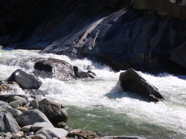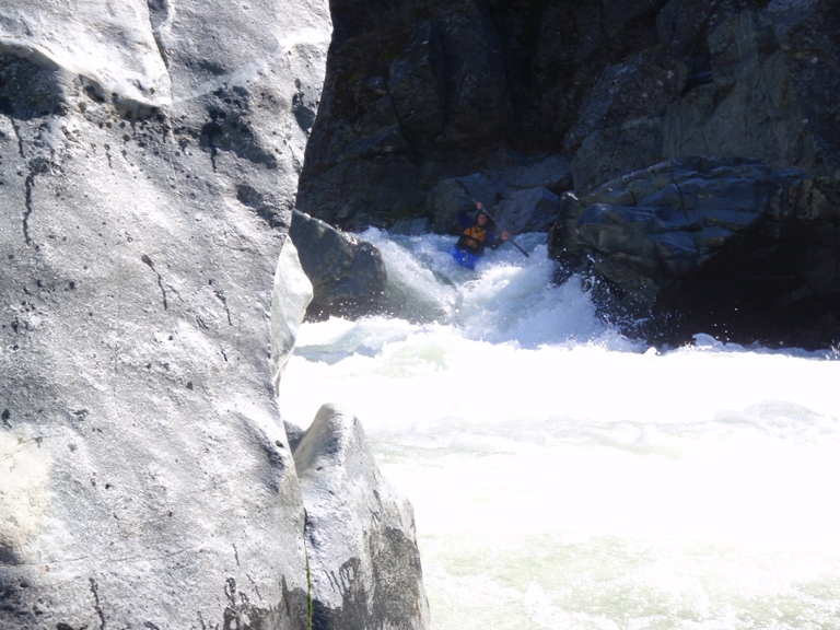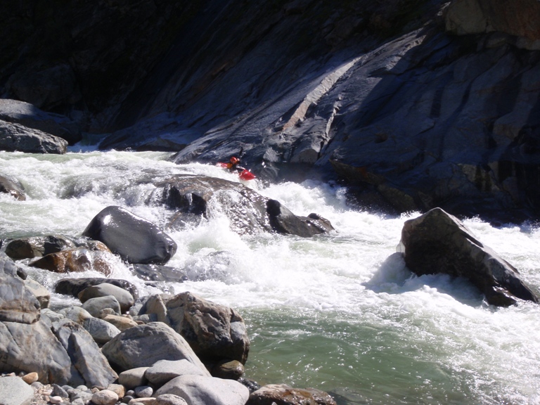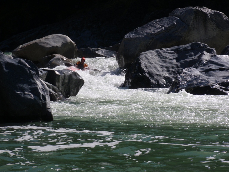 One last thing, although there are not too many rapids I have rated as class V, the nature of the run is continuous and with heavy consequences. Almost the entire run is badly sieved out and a swim would be horrible. Therefore, although most the rapids are only class IV to IV+, you can not be willing to take a swim or you will not be having a fun day. Also, these ratings only pertain to the low flow which I have run it at thus far. At flows over 1200 I have been told it gets stompy quick.
