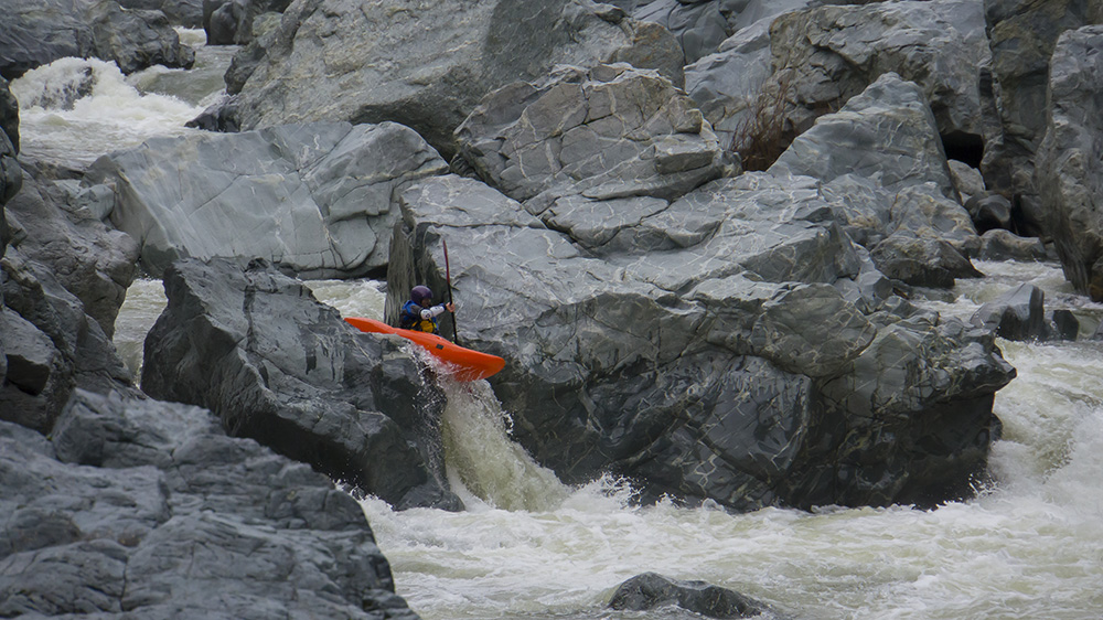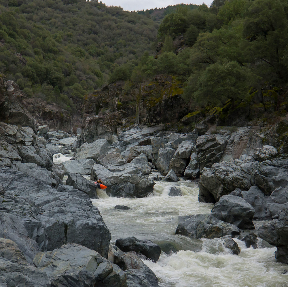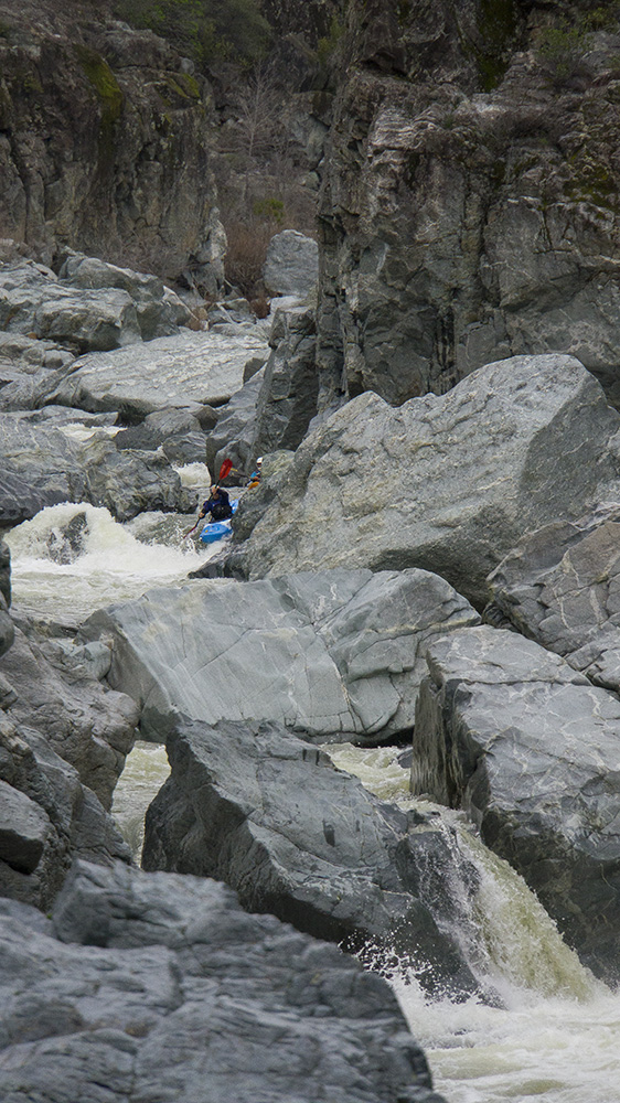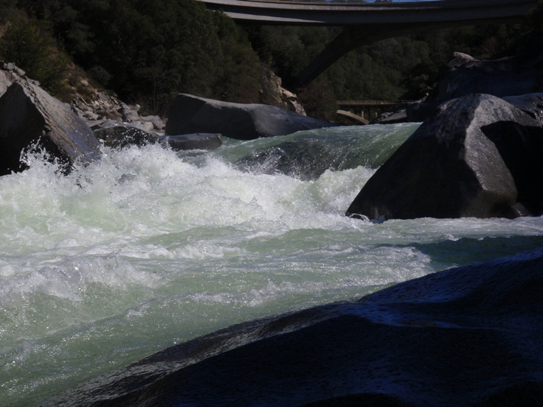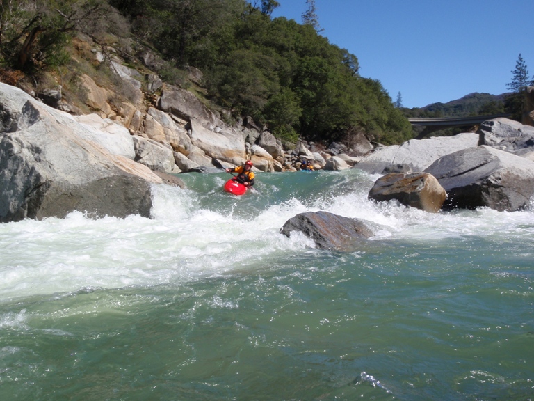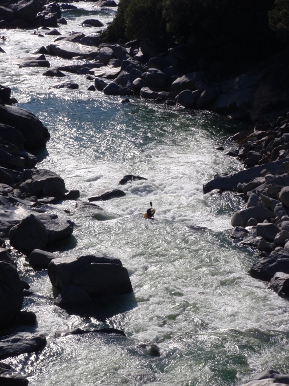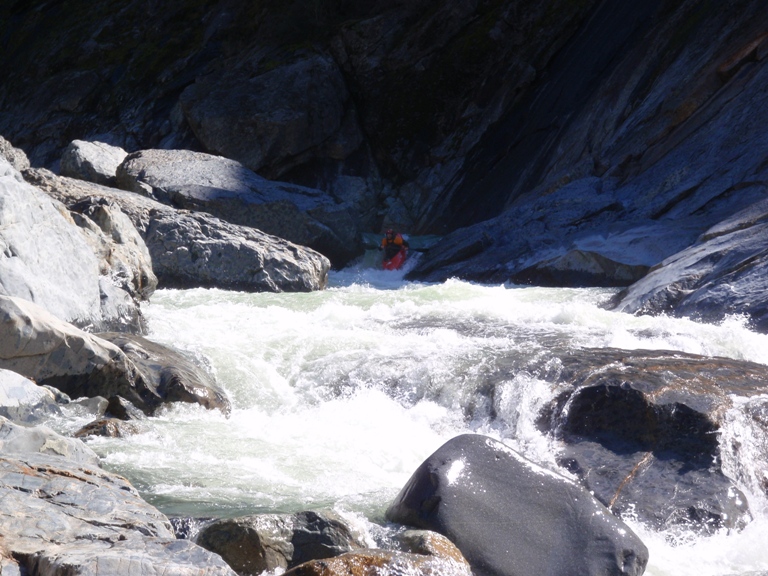 Update 2013: OK, so 6 years have passed since I wrote that first write-up for this section... At the time, it was one of the first real class IV-V runs that I had done. I think that is reflected in the fear and overall distaste of the sieves as well as the statements of the rapids being steep and junky. Now that I have better perspective, I think I will reflect and call this a classic. At low flows (450-750) the river can be a bit manky, but still very fun. At medium flows, it begins to clean up nicely, filling in many rapids but in exchange many holes are made larger. At the higher flows, it becomes legitimate class V and could not possibly be mistake as junky. The sieves are real on this run though. But taking your time to scout, or going in with a group of folks who know the run quickly relieves this concern. These days, this run is one of my favorite runs in the state. good scenery, great rapids, easy logistics, and a close proximity to Sacramento make it a go to destination for me on a regular basis.