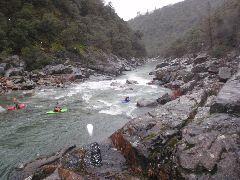 Take out: Take highway 49 towards Downieville from Grass Valley. At the first light after the turn off of 49/20 turn right. This is North Bloomfield Road. Take to the top of the ridge (maybe a mile). Turn left at the "T" intersection and descend 7 miles to the river, parking is on the far side of the bridge. The last mile or so is dirt, not bad, but not great either.