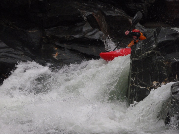 A day after running this run my memory has already started to fade of it. This may be due to being upside down more than upright, or it may just be because my memory is turning into my dad's, who knows. I would like to think it is because of paddling my brother's playboat which I am much too heavy for and stern squirting it through nearly every rapid in the first mile and a half. This resulted in some 6 flips in the first mile alone. Much of this run is also boat scout able for a first run, we only got out a few times to look. With that said, the rapids are going to be very vague as to placement and order. Actually, I have run it a few times since I first wrote this, and the rapids are now all in order.