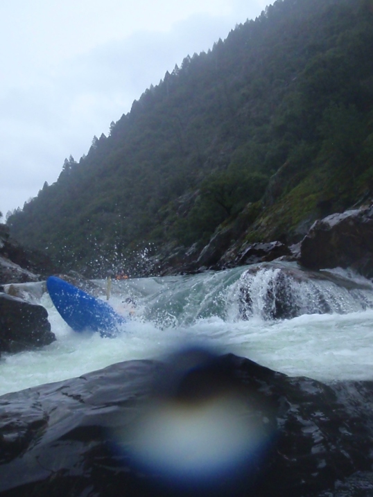 Post Easy/Ugly (IV). I don't even remember this rapid on the first run. Second time down it was bigger and more memorable. The rapid has two holes offset on the center left. Then there is some run out over a rock shelf. I remember it now due to the bruises that I had all over my body after flipping in the second hydraulic. Best line is down the left cutting in after the holes.