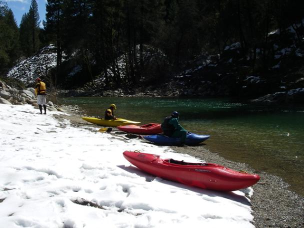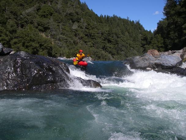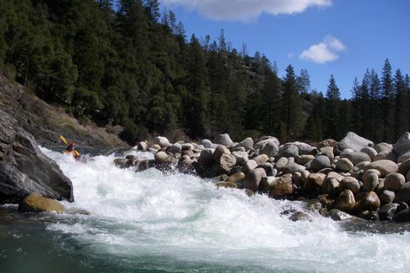 Take out: Take 49 to Nevada City, and follow it as it turns left and splits from 20. There is a light within a half of a mile, turn right on North Bloomfield Road. At the top of the hill, the road comes to a "T," turn right and follow this to the river at Edward's Crossing.