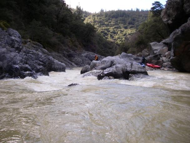 Our Scout (IV+). A boulder choke creates a blind rapid. We ran down the middle, zigging between two rocks that were both barely submerged, this then dropped us off a 4-5 foot ledge which needed to be hit correctly as to not get pulled back in.
