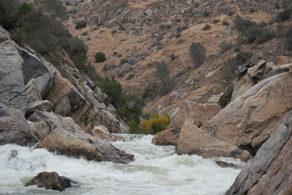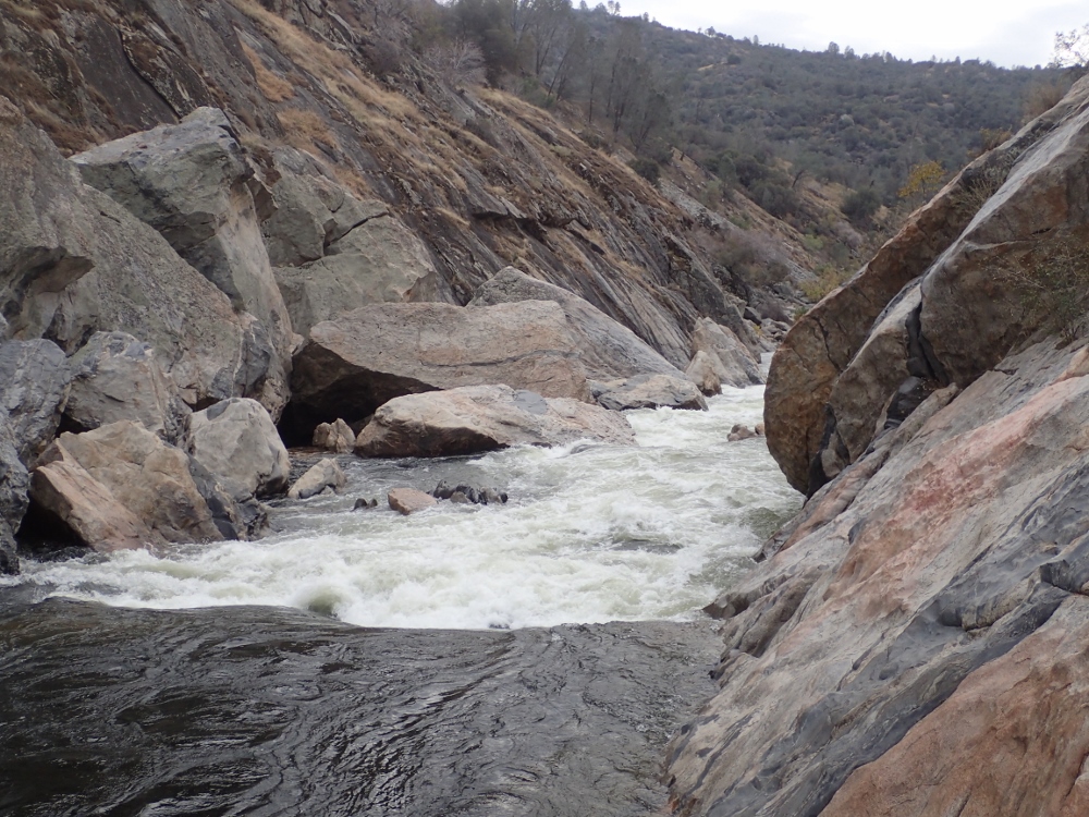 Take-out: Find your way to the town of Auberry 40 or so minutes north east from Fresno. Once in town, take Powerhouse Rd towards New Auberry. After 1.8 miles, turn left on Smalley Rd. Follow this for 5.3 miles down to the new powerhouse where the road ends. This is the "K1 to K2" take-out. For the partial run (if "K1 to K2" is too high), head back up Smalley Rd for 1.0 miles. Just past the campground turn left at the first junction you have come to since leaving the new powerhouse. There is a parking area 100 feet later on your right. Park here and then hike further down the road another 300 ft and turn left at a gated road. A short ways later there is a fork, take the left fork down to the old powerhouse. Scramble down the last 50 feet to the river. The total hike is 0.6 miles.