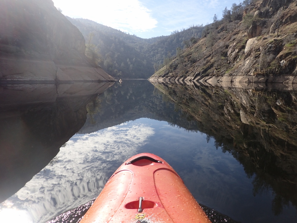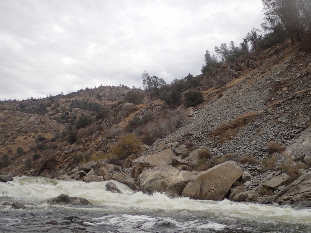 Put-in: Take Smalley Rd 5.3 miles back up to Powerhouse Rd. Turn left on Powerhouse Rd and follow it for 5.6 miles to the bridge over the river at the top of Kerckhoff Lake. Continue a little over a quarter mile to one of the access points along the lake before the road pulls away.