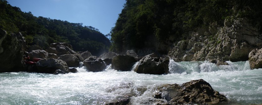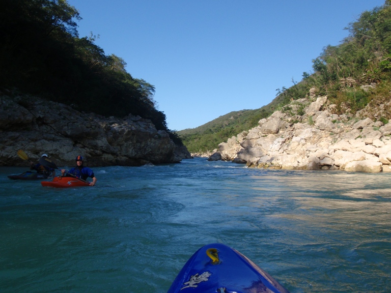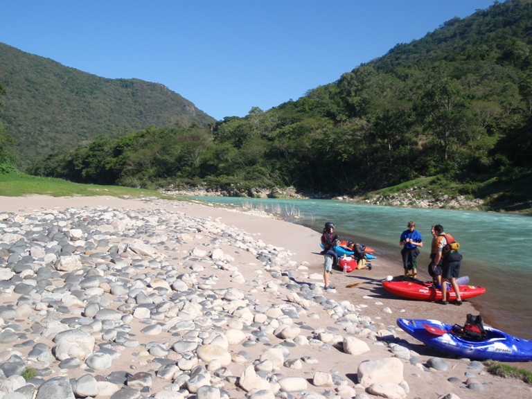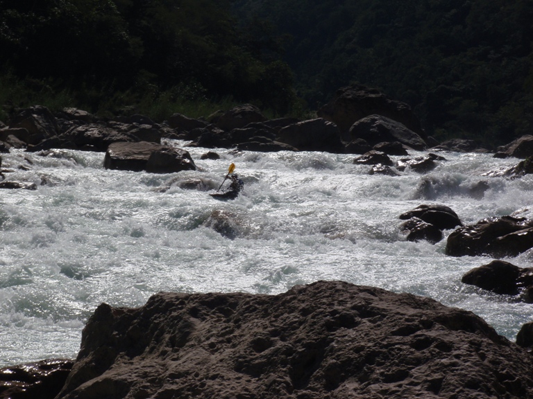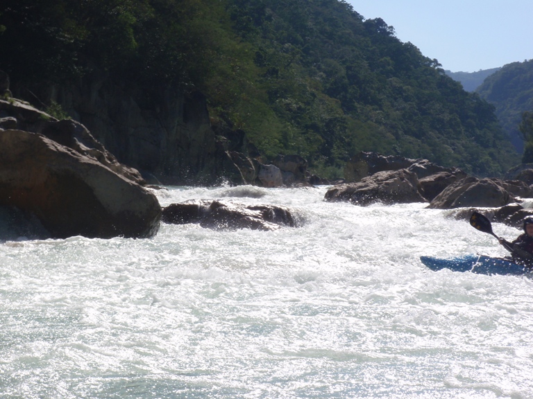 Huesos (IV+). A nice long big rapid. You will notice that the upcoming horizon is bigger than the maze rapids. Hope out and scout, we did so on the left. We ran down the middle boofing the entrance and running the holes on out.