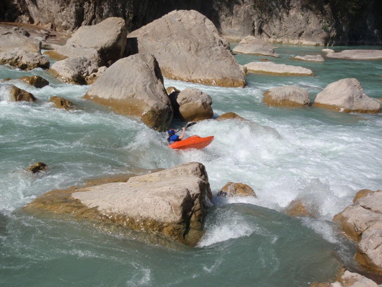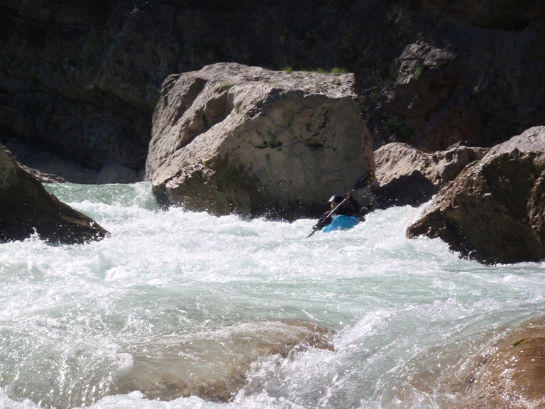 Atoradero (III). At low water this is a portage due to the water going underground. At our flow there were several door to choose from, we went right, down a narrow and short drop.