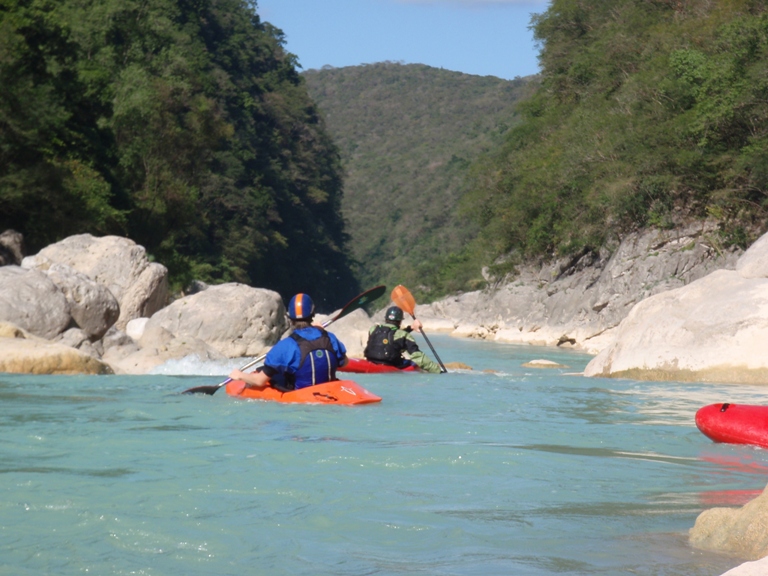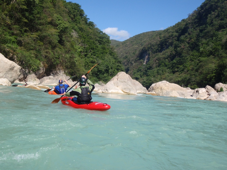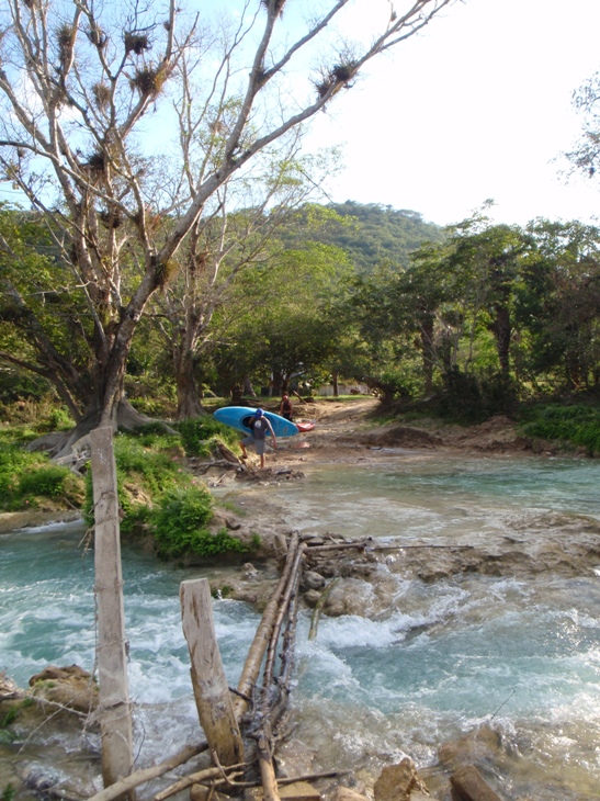 Take-out: 5 km past the Tampaon Put-in turn off of Highway 70, turn left at Tanchachin sign (29 k from Ciudad Valles). Then again left at the sign to "Tamul" painted red on the cement wall. Continue down to the Rio Gallinas and park alongside the end of the road.