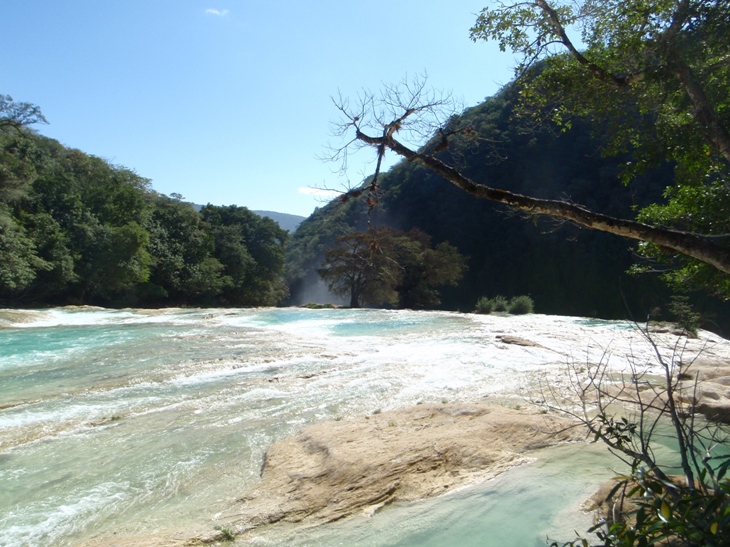 So, the river itself was a bit of work, with lower water I think it would have been a bit better, but regardless this river was awesome. Beautiful blue water lined by sandy beaches and green forest. And then the grand finale is at take-out. As you round the corner and you see the 360 foot Cascada Tamul poring over the cliff side and into the river you will be awe struck, guaranteed. Then the reality sets in though that you have to climb up the ladders to the top of the falls and then about 1 km up the Rio Gallinas to the cars. I still thought it was worth the effort though. I don't know if the river guides feel the same doing it every week, but for a vacation trip it was awesome.