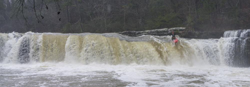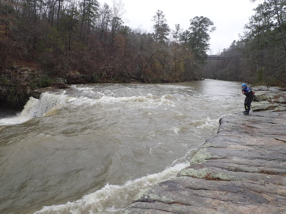 Put-in: From the take-out, cross the lake to the west side on AL-227. Continue for 1.6 miles before turning left onto Gerald Bryant Rd which in 0.2 miles cuts the corner to Hustleville Rd. Turn left onto Hustleville Rd. Follow for 7.4 miles, if you keep you eyes open, around the half way spot on this road crosses the river and you can get a glimpse down at the falls downstream. Anyways, after the 7.4 miles, then turn right onto AL-75S. Go 1.5 miles, cross the river, make a u-turn and then park in the spot for one car about 100 yards before the bridge. There was easy access on that side of the river.