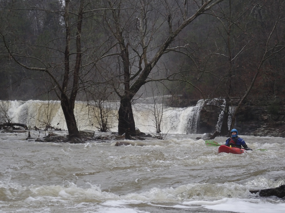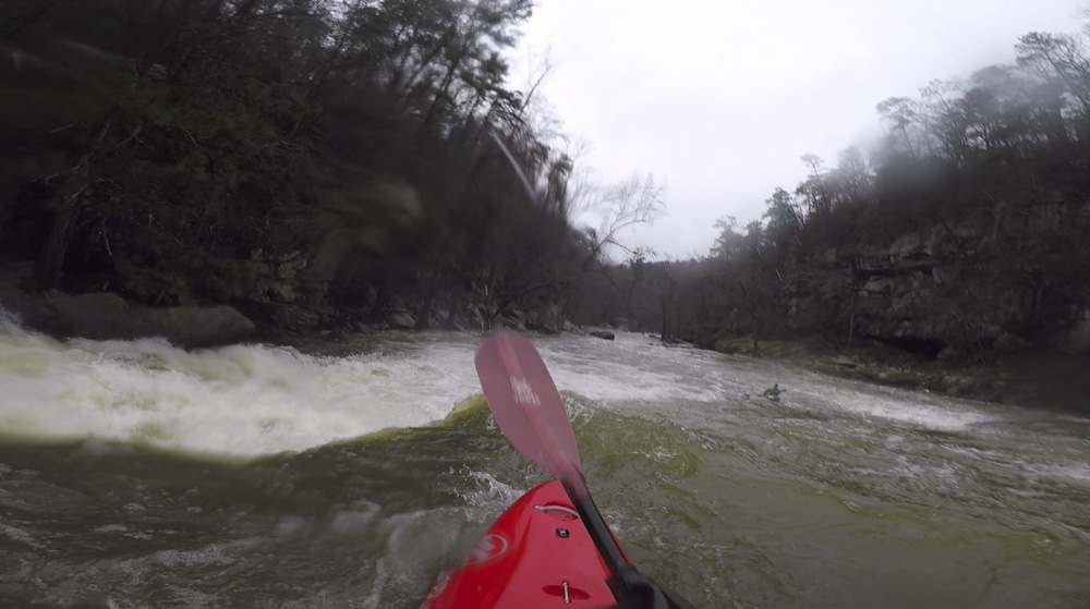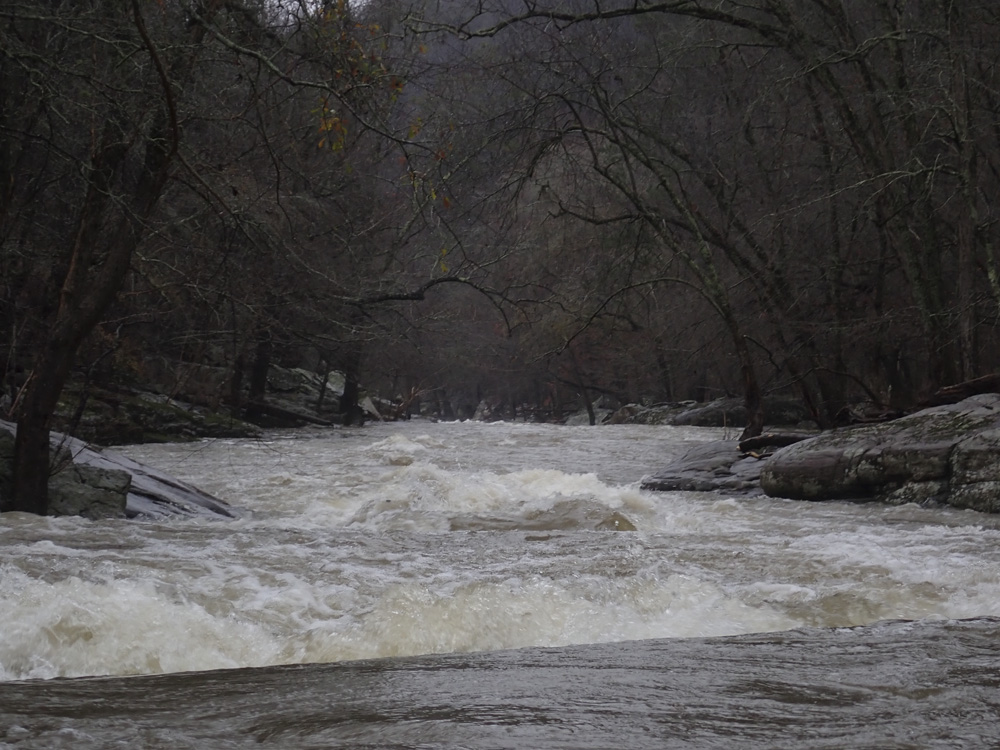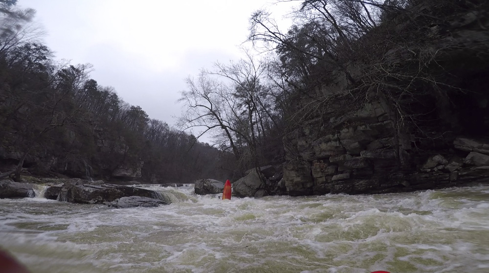 The run starts off with a mile of mellow paddling to warm up on. Once you get below the Martling Rd bridge, action picks up a bit with some class II and easy III rapids which I recall hitting in two spurts. But, the real action hits below the Hustleville Rd bridge. Here, you will find Short Creek Falls immediately downstream. This 15(ish) foot falls is super straight forward and forgiving. Be mindful of the wall on the left which can cause issues. Walk back up for laps on the left. Below, the action keeps going fast, and if you have higher water, you will find powerful holes as this river's ledgy nature doesn't scale as well as South Sauty. We had similar "medium healthy" flow for both, and I thought this run was harder. I have heard, at lower flow, this one does get easier though. Anyways, below the falls, you have another smaller falls not far downstream, and then are greeted with several fun boulder gardens captured between very scenic Sand Mountain scenery.
