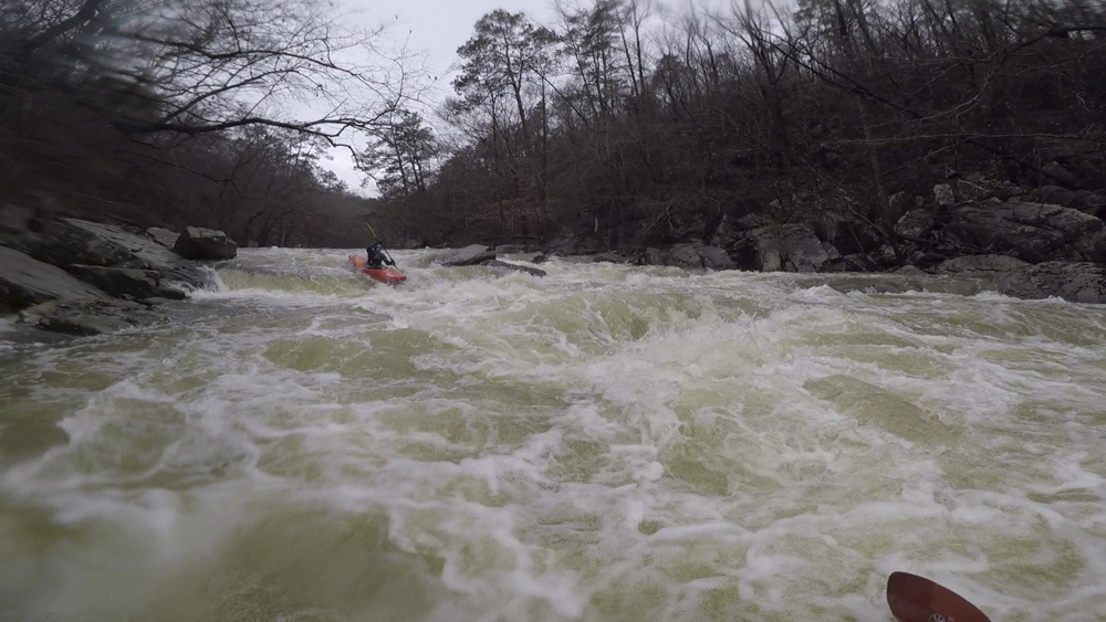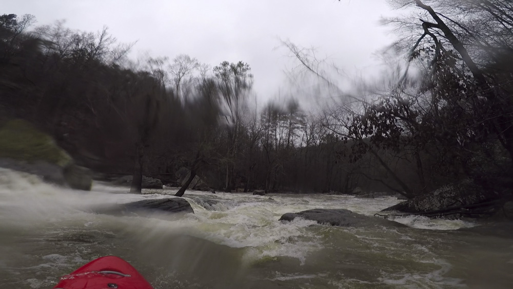 - Confluence Rapid (IV). Man, this rapid was an eye opener as I didn't expect anything this pushy to be on the run. It is a long rapid, and the top isn't bad but hides what is downstream. I entered and worked far right with the current. I then see that the river has a curler and pocket hole forming off the right side of the main current, I go to boof the curler which as I get closer ends up being much steeper, and the pocket to the right, much worse. I got on top of the curler and boofed the small ledge no problem. But, in future laps, I will work further left in advance as I am sure this spot could get ugly. Below this move, work back left again to avoid a rock pile below, and then it turns into read and run from there to the confluence.