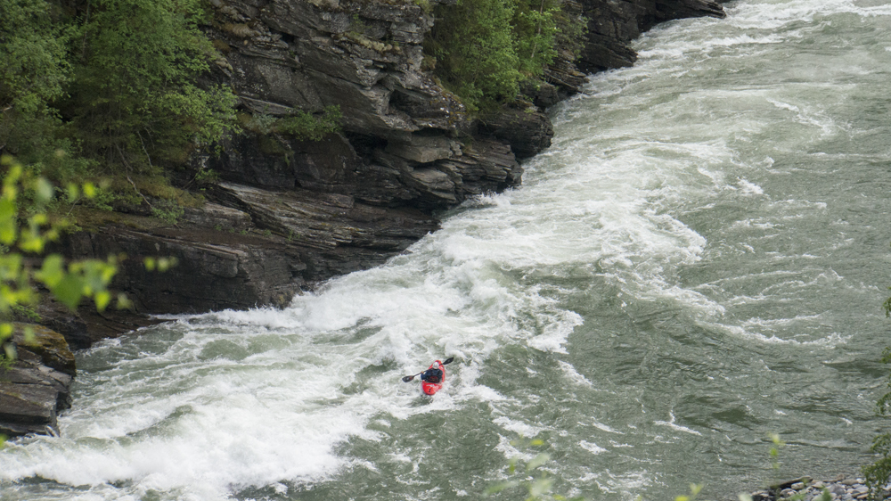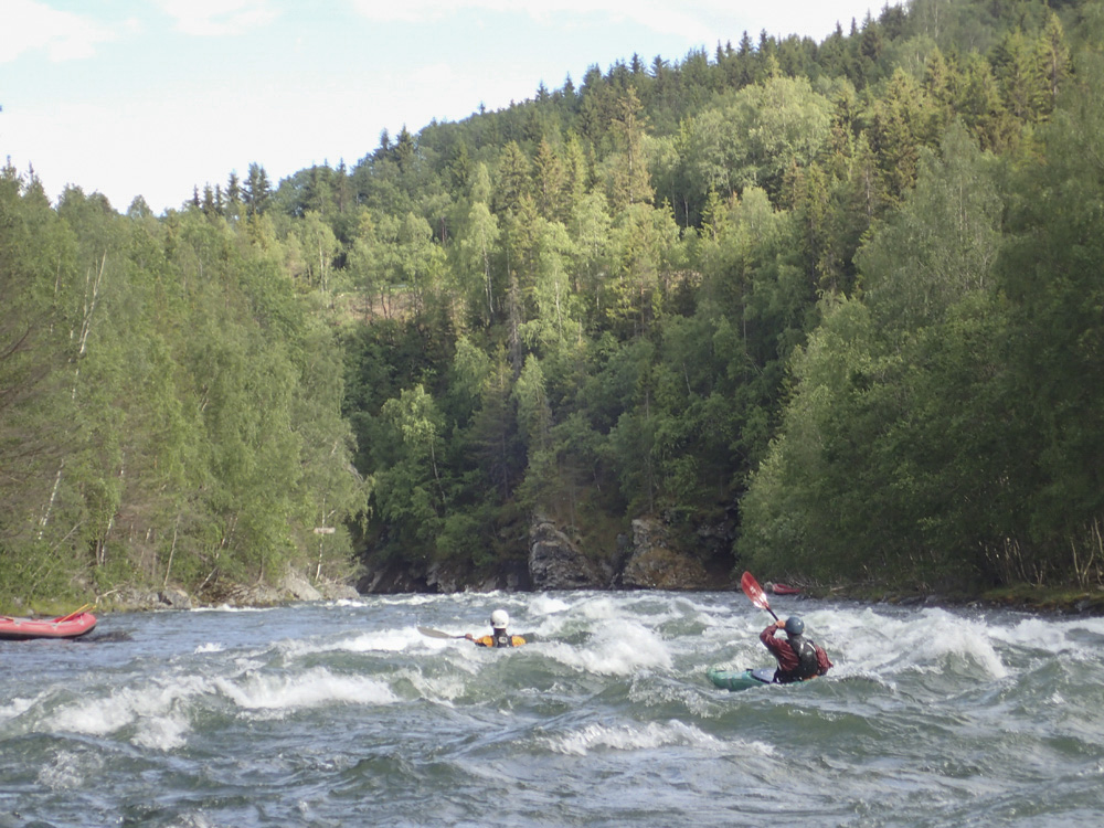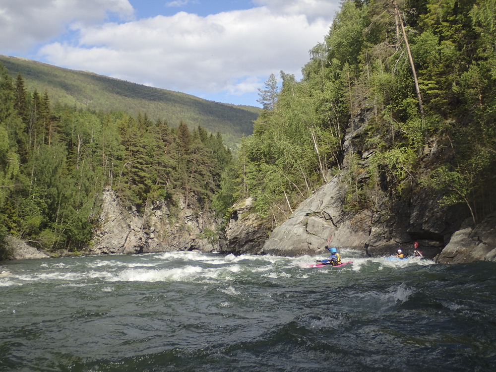 We actually ran the Play Run a few times. First was the evening of the Store Ula, we made a quick lap that night prior to cooking dinner and heading to the Kayak Camp. The second time was after our day starting on the Åsengjuvet. Third, for some of the group was later that same day as safety kayakers for Paul's rafting group as the water was quite high and only inches from the rafting company's cut off.