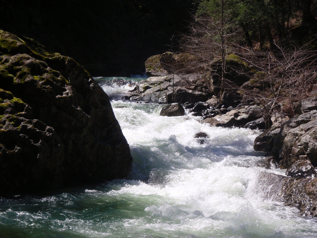 - Guillotine (IV to IV+). Run down the center, the water refracts off the left wall into a room of doom on the right. Just downstream is a sweet double set class IV-IV+ rapid. We ran the left channel driving right as we found a rock in the middle of that channel. The second set we ran down the middle to the hole below. A couple of class IV boogies rapids keep you busy below.