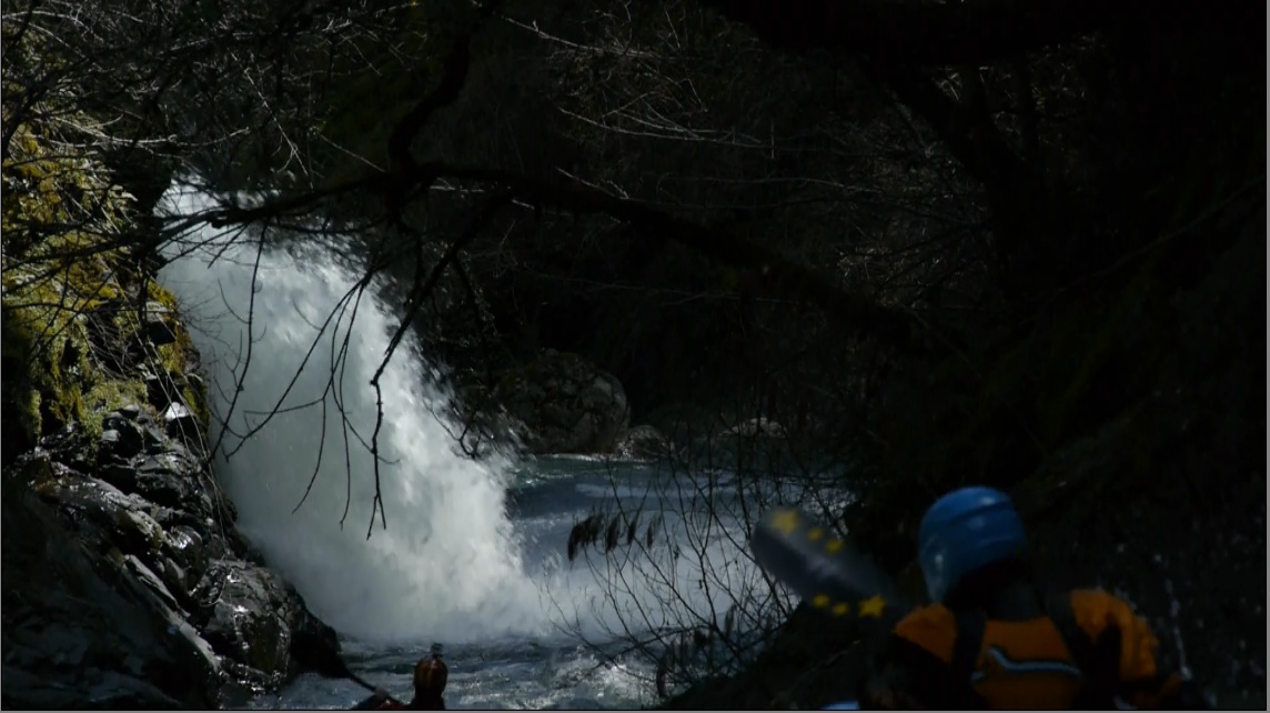 - Pair of Kings (IV to IV+). A short drop, there is a good eddy on the right at the top though you scout from the left. You will recognize it by the truck size rock on the left and horizon line below. We entered left and kicked center. At lower flows you have to run right. The hole at the bottom can be mean and has swum plenty of people.