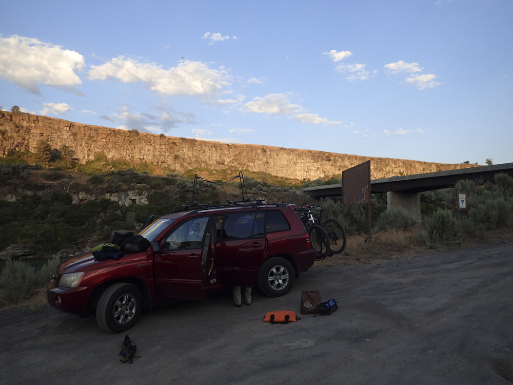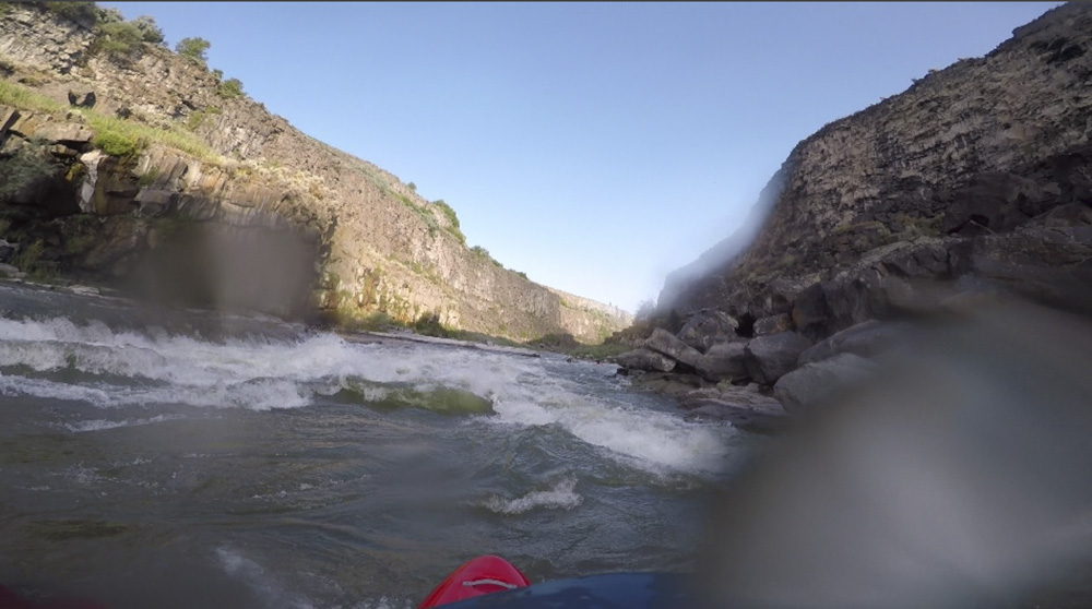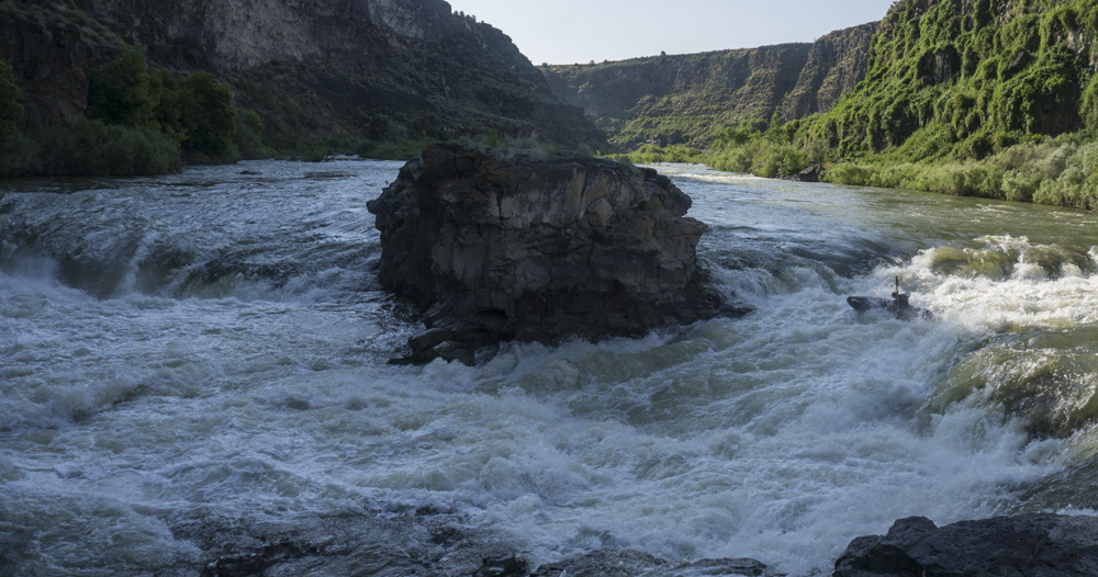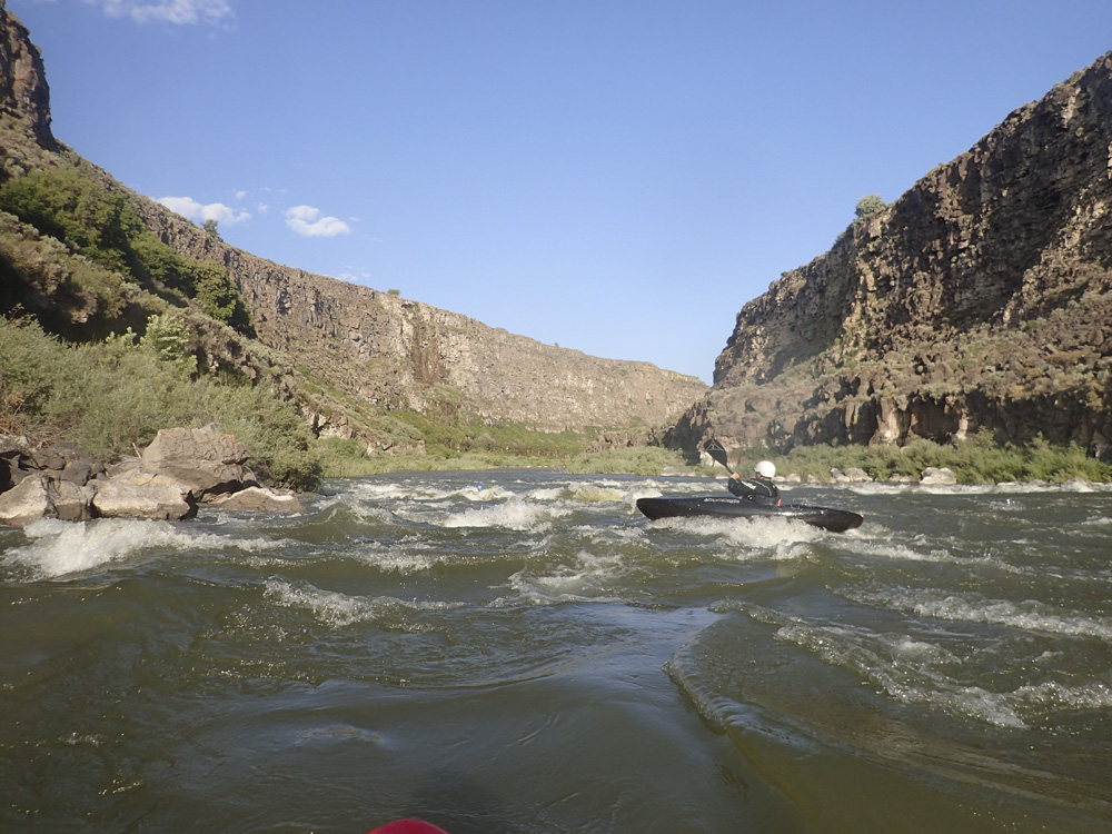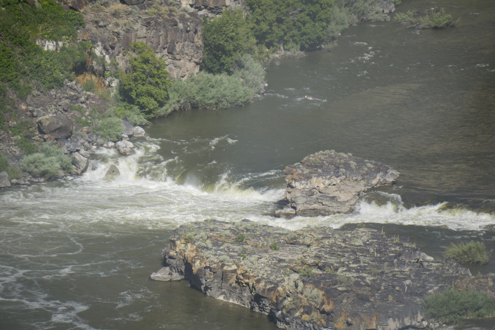 The plan was originally to bike the shuttle, freeing Amanda to hang out with Penelope at camp or wherever. But after driving to Shoshone Falls the night before, we realized that the bike was going to be very long, and a hitch not likely as it was on small, gridded, farm roads. So, with her normal helpful demeanor, Amanda said that she could pick us up at the bottom. The other part of "the plan" was to get an early start. After the run, Diane and I intended to drive 9 hours to Portland where my family was all gathering for a wedding of a cousin the following day. So, the earlier start on the drive the better as it would allow me to actually socialize that evening with the aunts/uncles/cousins/siblings/nieces etc. So, with an alarm at 5 am, we were leaving camp by 5:30 and putting on by 6:15 am. We anticipated the rather long run taking us at least 3 hours, if not 4. We also weren't sure what the flow was going to be, the gauge had been crapping out, and we thought we would have somewhere in the 1-2000 range, which is not really a full flow for the river. Upon putting on, we found that we had 4,000 cfs which is a nice flow for the river for sure, and also made for much faster time down the run. We realized that we would make faster time as we pealed out and ran the first rapid or two, both of which were fluffy, fast, and surprisingly powerful. Thankfully the water was warm as the morning was still early and the sun far from cresting over the canyon walls.