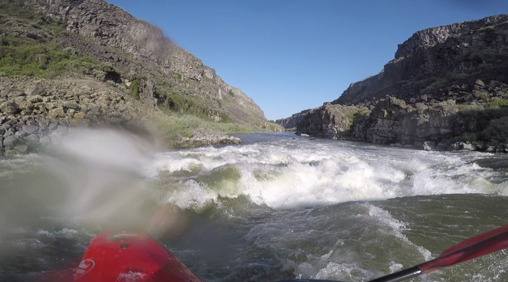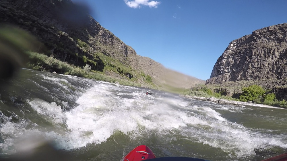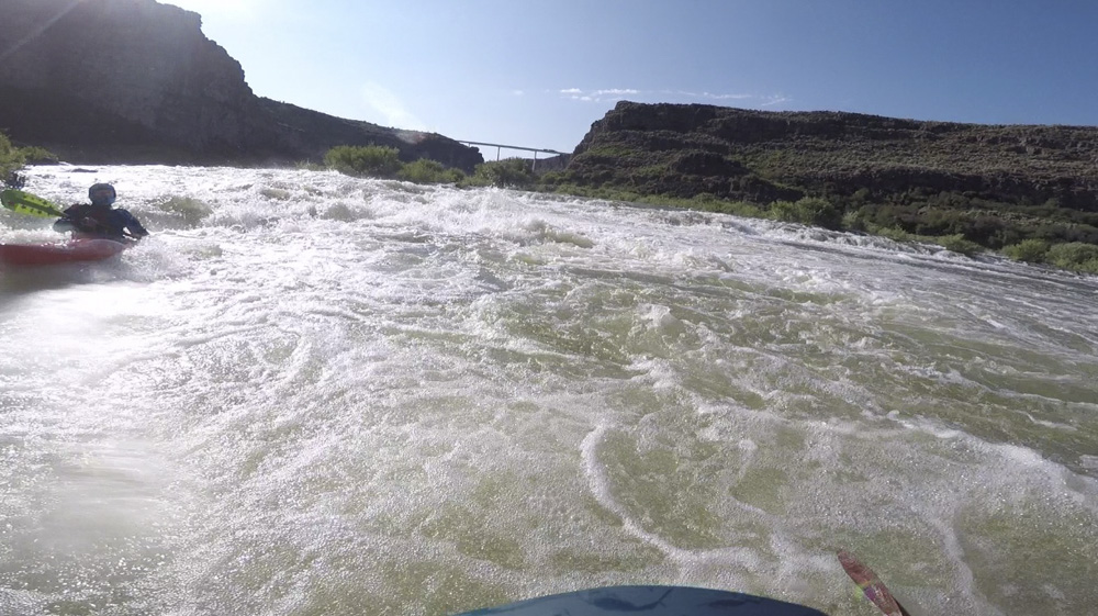 - Lets Make a Deal (III to IV+). Depending on your flow and appetite there are 5 channels to choose from, each one formed by pillars that rise out of the river. We went far right down the hardest normal channel, door #5. That channel was against the shore, into a big curler which drops into a fast moving corridor which then ends in a large hole/curler that flushed out to the left. Not sure what the other lines are like, but far left (door #1 and #2) looked very shallow and chill at 4,000 cfs. To me, the line that looked the rowdiest was the door 4.5 which starts left like for door 4, but then takes an offshoot back towards door 5.