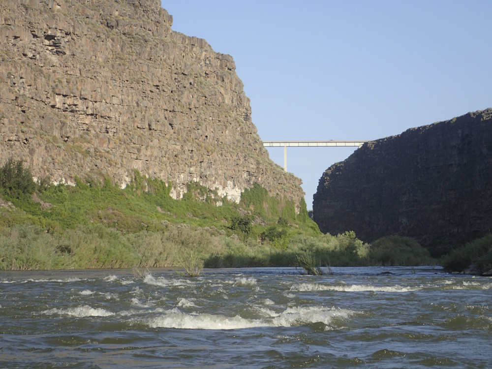 Take-out: Depends on which way you come in from... but you will almost certainly be on I-84. So, coming from the east, in the town of Tipperary take the ID-50 exit and turn left onto ID-50. Follow this across the bridge (take a look at Pair of Dice if you want just upstream of the bridge) and then take the first tight onto Addison Ave. Follow this for 3.1 miles before running onto 3500E. Follow this for 1.5 miles and turn right onto 4050 North Rd. After just 0.3 miles turn left onto Twin Falls Grade which will drop down to the boat ramp at the dam.