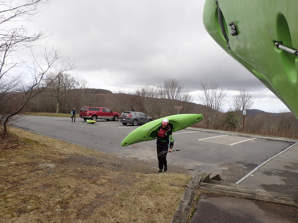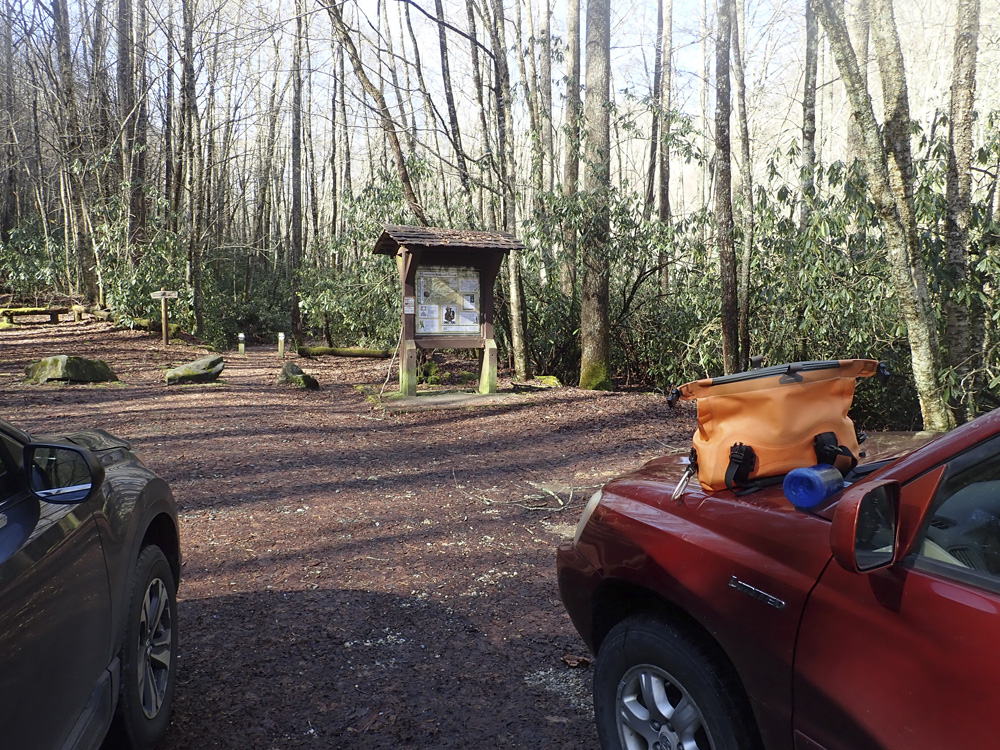 Put-in: go back out to NC-143, and turn left. This is the Cherahola Skyway. Follow this for 14.8 miles to the parking area at the Hooper Bald Trailhead.