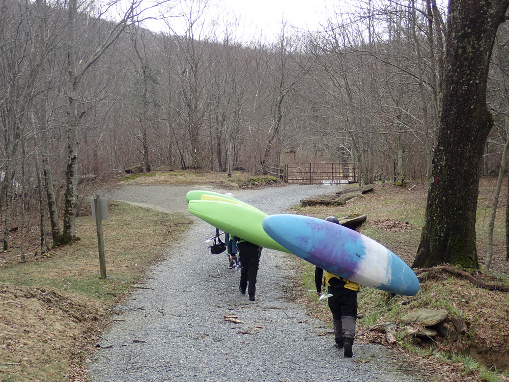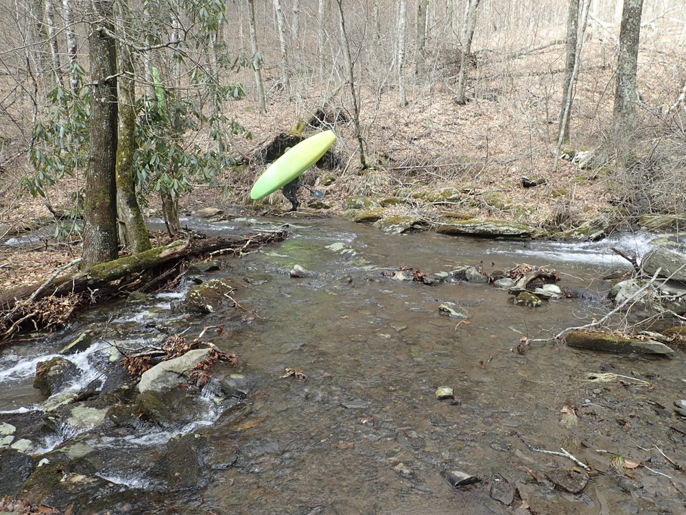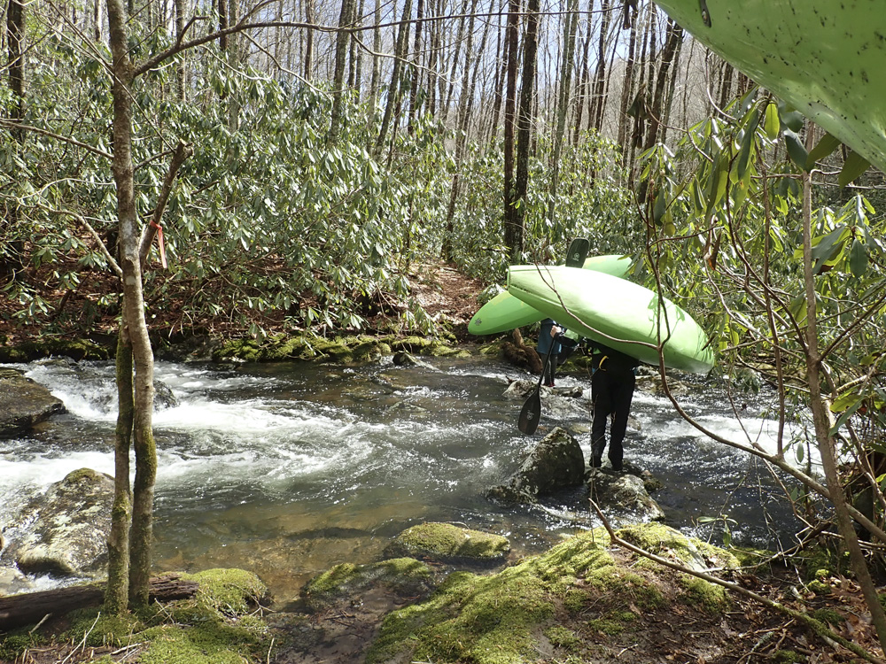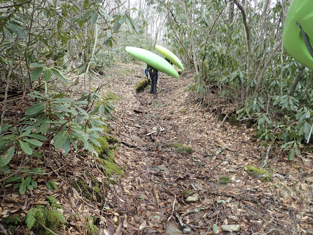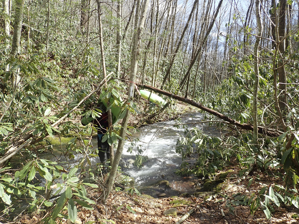 As the trail hits Snowbird Creek, you can turn left and go down river left... this trail follows the river the whole way, though it crosses it often. Walk downhill until you like the flow of water, we crossed a few times and then put on. We manked down for a half mile. We should have hiked a little more as it got much better after Bearpen Branch entered.