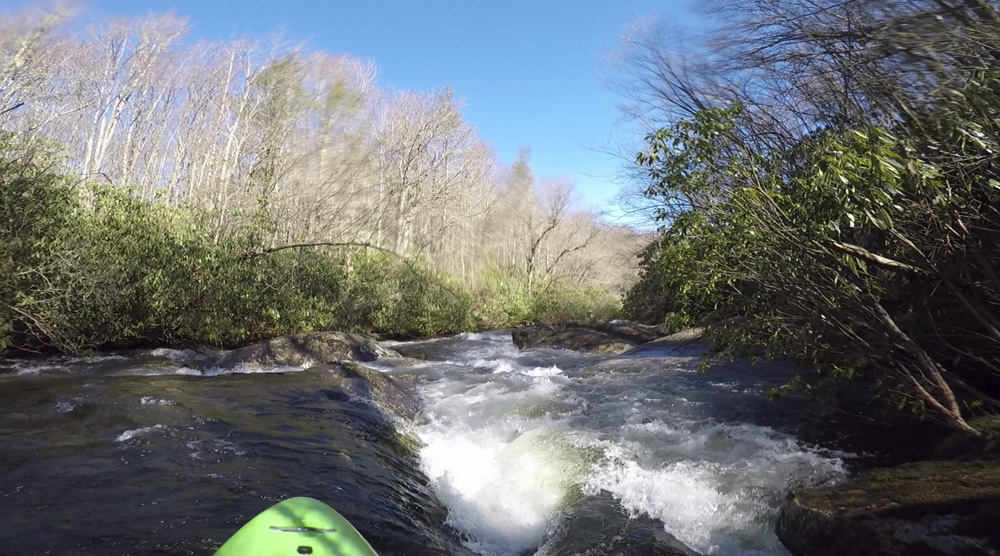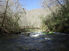 - Micro (II to III). This section of the creek is very very micro. If you aren't hitting rocks, I would be concerened that you have very very high flow. Every once and a while you will come to a nice bedrock ledge or slide. There was also a cool pinch in here as well. You collect water quickly from tributaries though, by 0.35 miles in you should have a small creek's worth.
