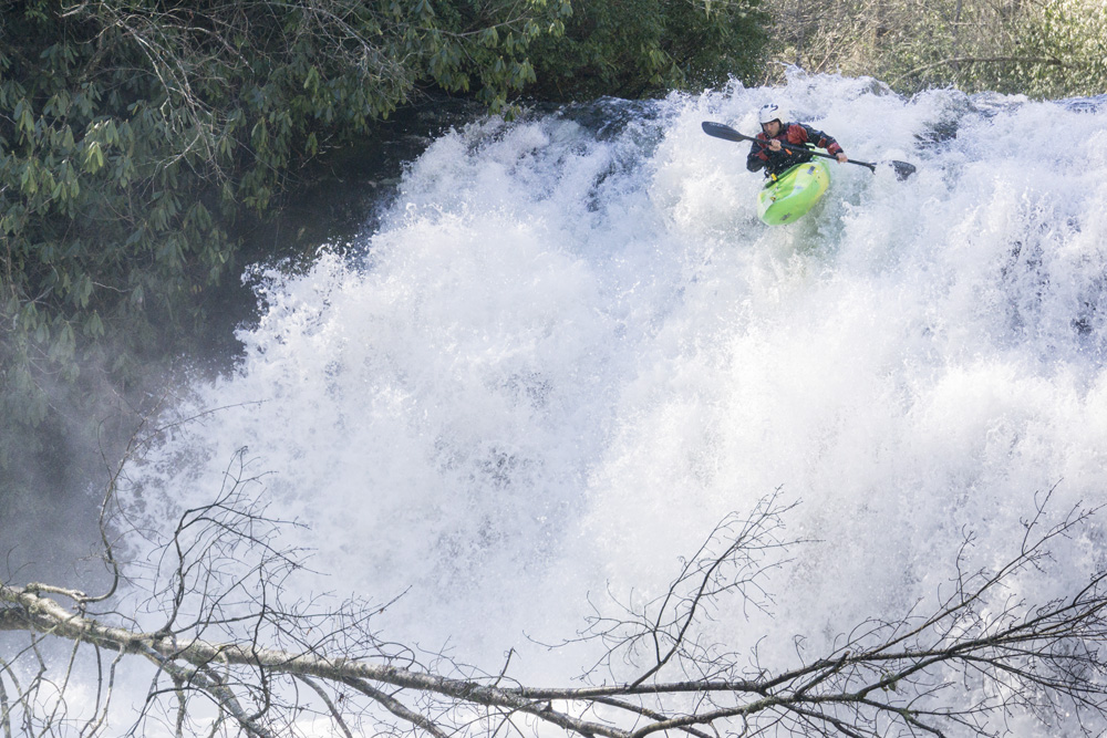 - Middle Falls (V). After a left bend, get out to scout on the left. You can't see the horizon line from where you get out, as there is a lead in. So after the previous bedrock drop, start to be cautious. The lead in has a slopping ledge that moves you left, you want to drive right and boof pretty far right of center in the deepest spot. The drop is 20 feet tall or so, and a few plugged and no one reported hitting anything.