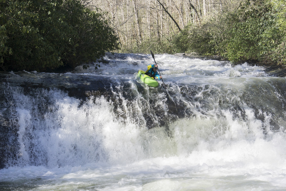 - Big Falls (IV+). Officially I think "Big Falls" is the name for this and the next drop, but for kayakers they are two separate drops. This one reminds me of Staircase on Horsepasture. Slides and ledges leading to a clean ledge at the bottom. We ran down the left through the top and then finished right of center for the final ledge. One smaller ledge was just 40 feet downstream. From there, 100 yards of boogie led to the next drop.