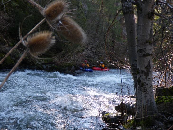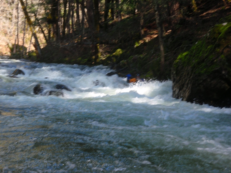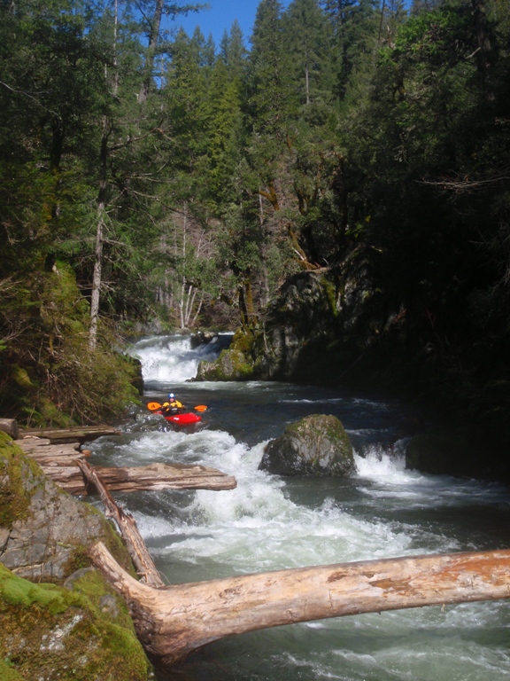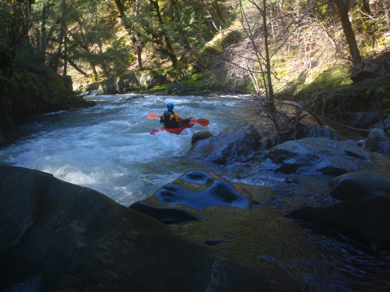 Canyon Bridge (IV- to IV). At the end of a straight away the river drops into a good size hole and then leads to a rocky ledge. You can boof the right of the large rock in the middle or just go all the way right around it.