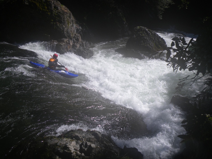 Triplets (IV to IV+). Three drops each with a large hole. Each successive drop gets slightly easier, which is nice. The first one is a ramp down into a large hole that recirculates back on the left as it deflects a rock, and on the right off of the wall. The line is down the left of center heading right, find the seam and carry speed. The next drop has a few options, some of us boofed the far right, some boofed a semi blind rock center left. The final drop was cleanest on the far right. Easy to portage on the right if you are inclined,