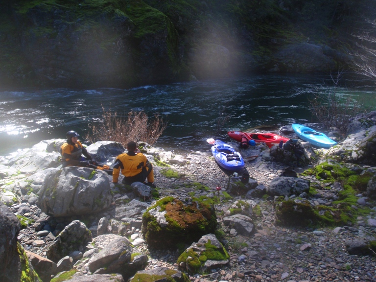 Upon putting on you are greeted with continuous class II rapids which occasionally spice up to class III. After a mile you get to the first of the ledges and the fun really begins. After the waterfall section you get to some mankier but still surprisingly fun rapids. There is a wood portage or two (2010) in the mile or two below the ledges. After 7 miles Tom Neal Creek enters on the right nearly doubling the flows. The next straightaway has several great fun rapids, the second of which is the hardest on the creek. The first one will sneak up on you but is only class III. The big one is a triple drop with two serious holes to get through. From here there are several more sections with class III-IV rapids though the gradient seems to diminish. Once you get to the confluence, if you have 1,600 cfs you will be done in 1.5-2 hours without scouting. You still get all the biggest and best rapids of the Lower-Lower McCloud; Double Drop, Tuna Creek, the Reagan Years etc. We put on at ~9 AM, got to the confluence at 1 pm, took lunch and got to take out at 3 pm. With less water or with scouting I could see adding 2 more hours to the run. Although we had someone that had done the creek before, we still took a lot of time to get down it not out of fear, but because we were going out of our way to take pictures. Anyways, this is a great long day run. It is too bad there isn't more camping as just a few mile below put-in you boat through a fishing resort's property thus limiting the camping spots to overnight on. As it was, there are some early in the day that I believe are ok to camp at.