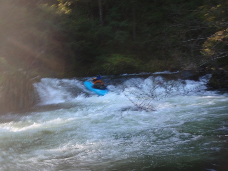 Hump Boof (III to IV). A smaller lead in leads to a larger horizon line. We went left of center and boof over the large hole. One in our group went too far left though and got to try out cart-wheeling the Nomad.