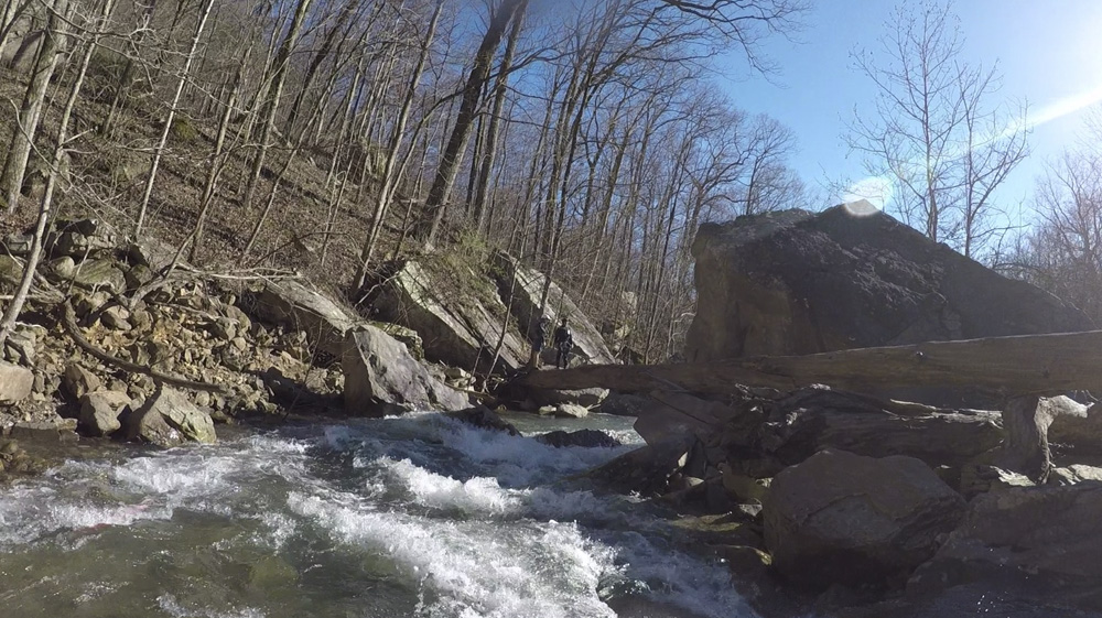 Take-out: From Chattanooga, head out of downtown on TN-27. Follow this for 2.5 miles before exiting to follow Signal Mountain Rd (127/27). Follow this for 1.7 miles and turn left to stay on TN-27. In 4.0 miles you will get to the bridge over the creek. This is the high water take-out option. For the more normally lapped section, continue up another 0.8 miles to some turn outs directly downstream from Knucklehead.