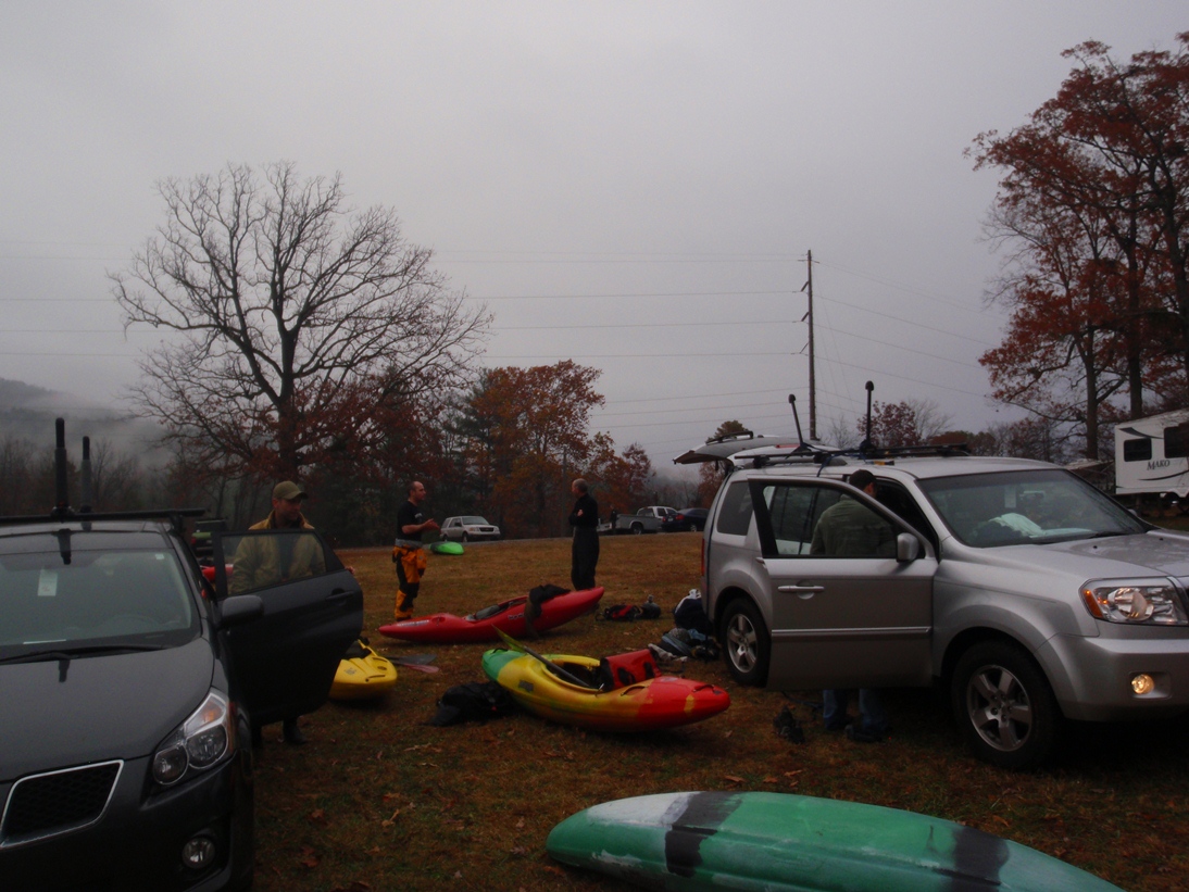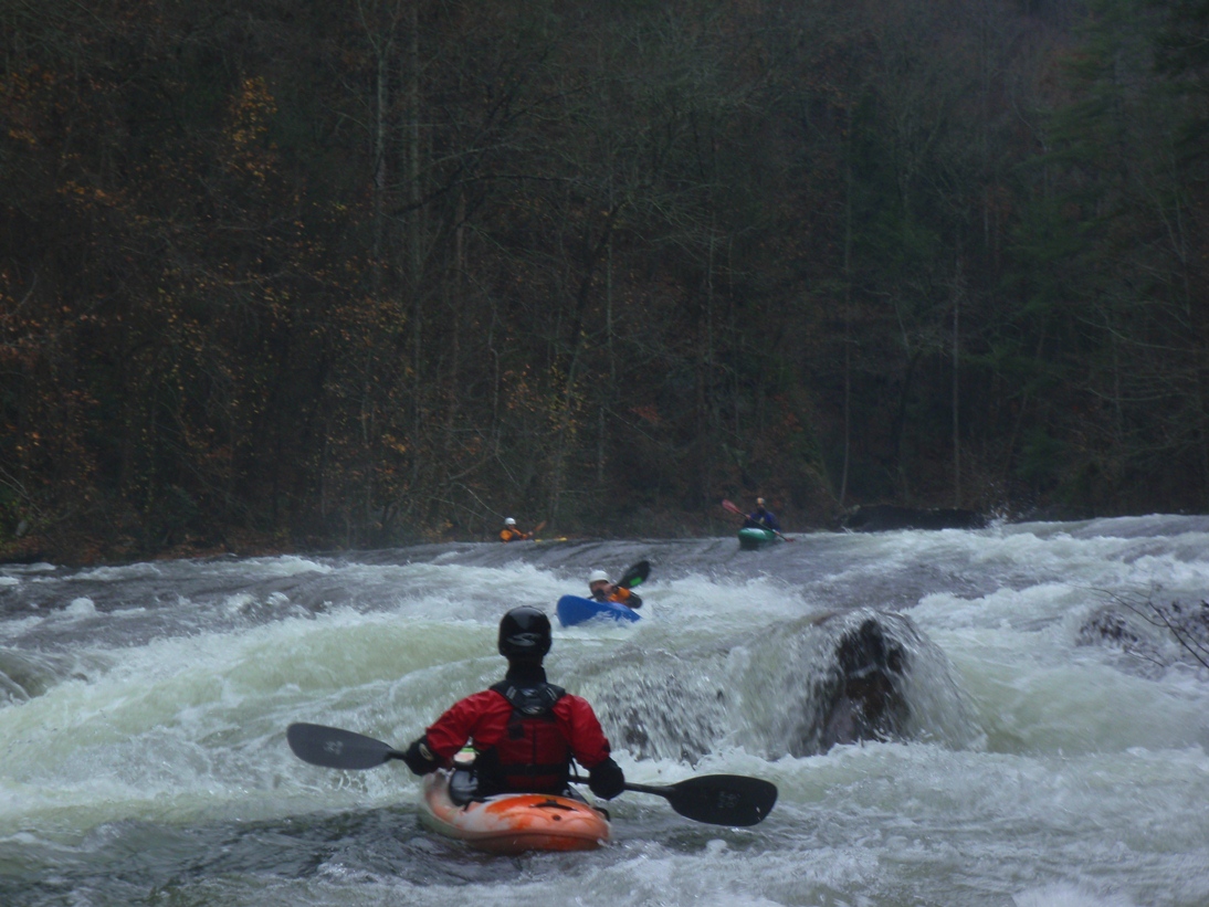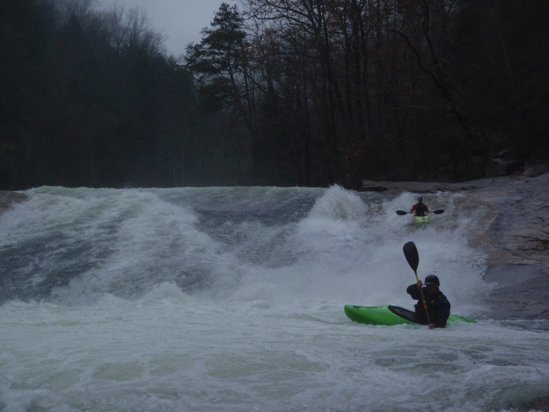 Mike picked us up in Huntsville Friday night to start the 5.5 hour drive to Cornelia, Georgia where we would be staying. On the way, we picked up the boat from David in Chattanooga. Arriving at 1 am, we knew that we weren't going to be afforded much sleep. Waking up in the morning we left to set shuttle and meet with some of my friends in from North Carolina and Tennessee. Although the shuttle is only 7 miles, it still takes about 20 minutes one way due to much of it being on a dirt road. Once the shuttle is set, you look forward to a 1/3rd of a mile hike to the top of 590 stairs. Depending on how busy the release is, you may get stopped by a line at step 275... requiring a long one person at a time wait to get the chance to put on yourself. The problem is that there are only two spots to put on, though two or three others are also perfectly possible. This coupled with the significant class IV nature of the crowd resulted in slow progress towards put-in. Luckily for us, two of our three laps had no line while one lap had only a 100 step line.