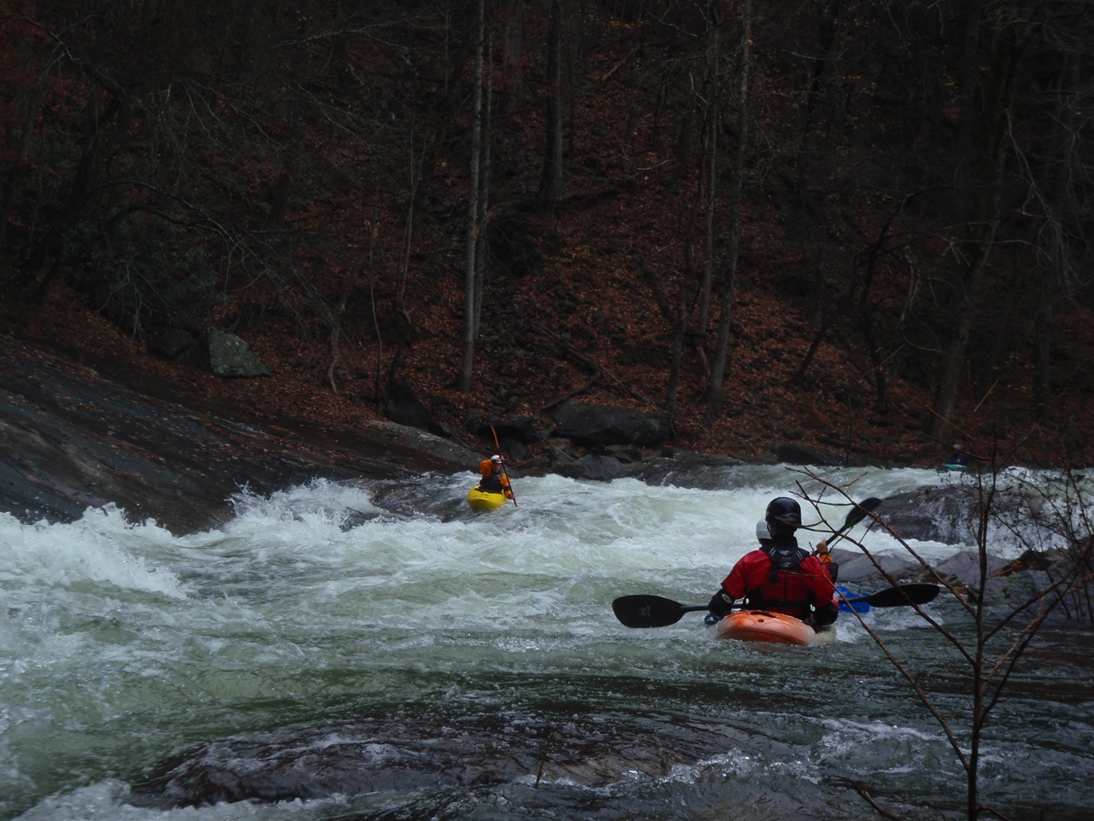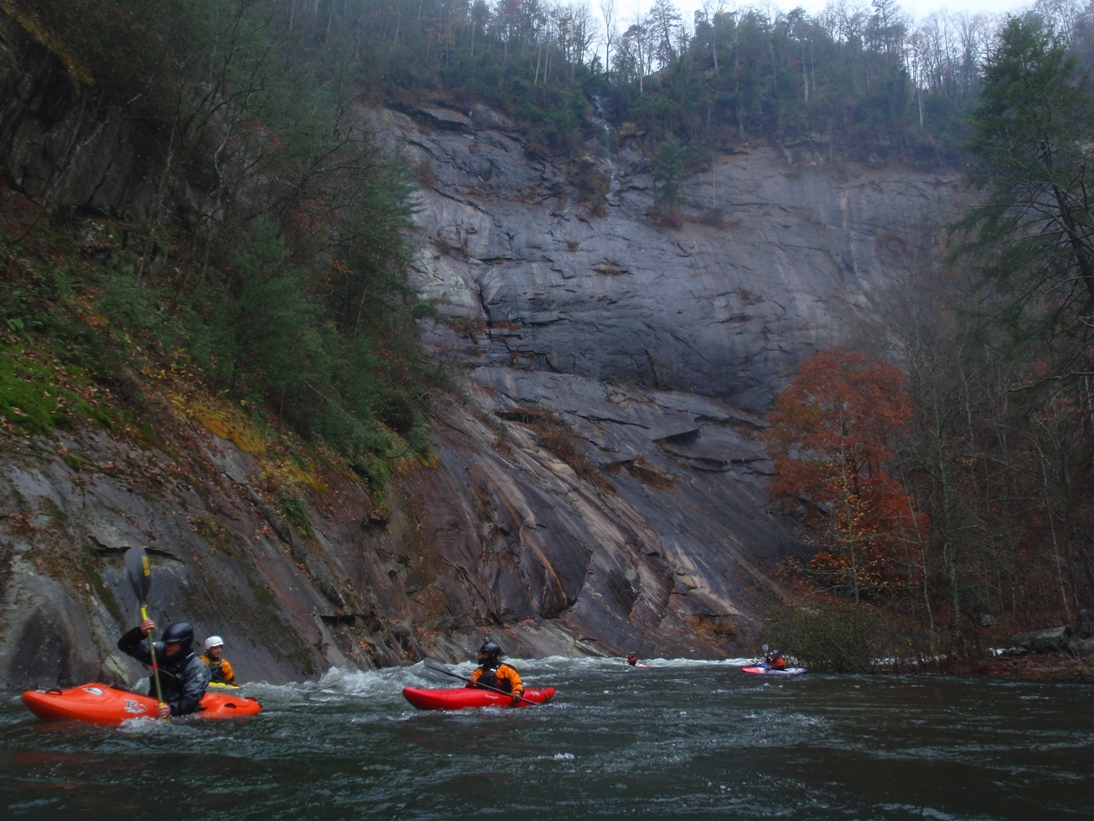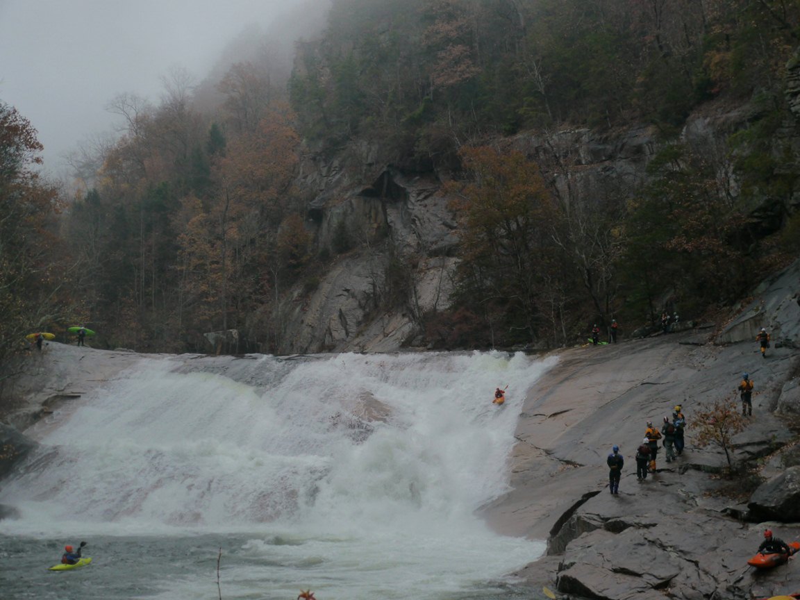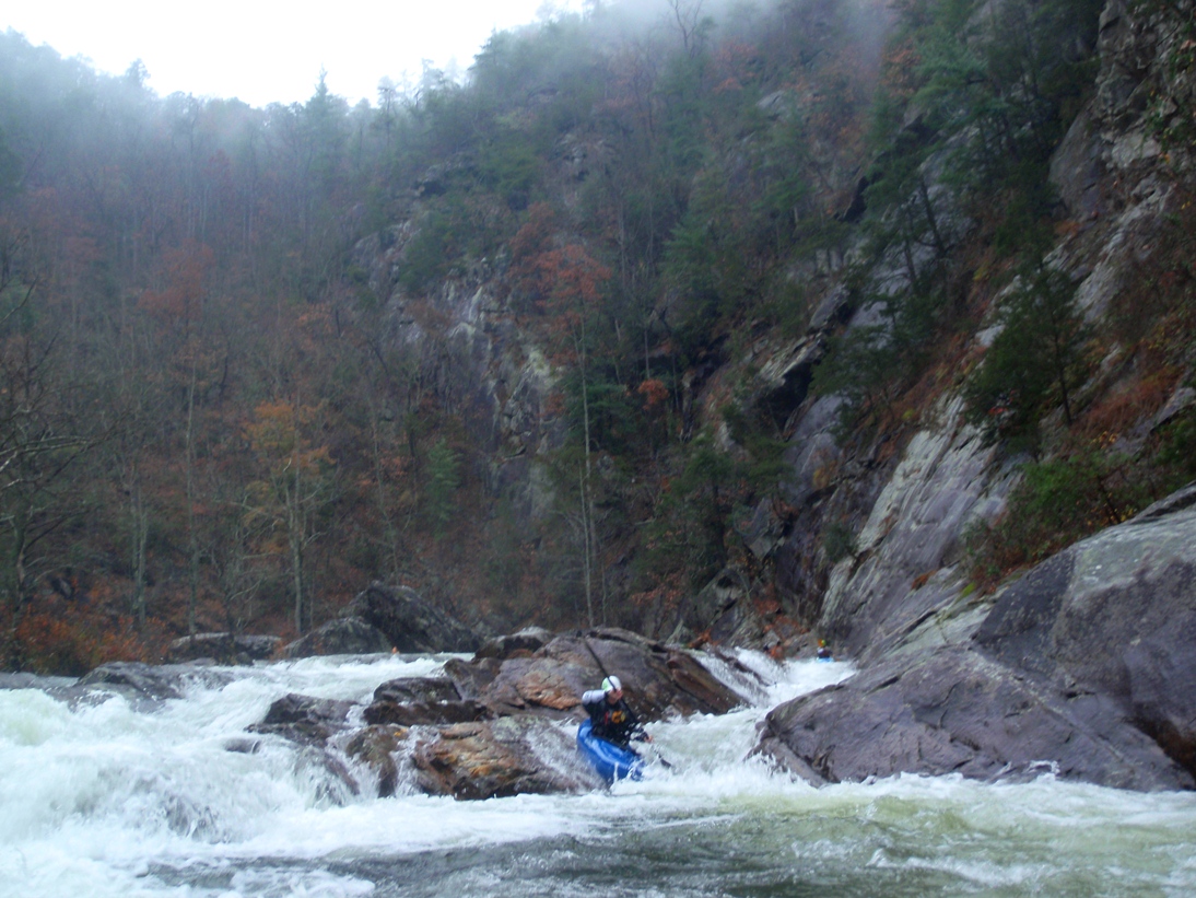 Put-in: Head back to Tallulah Falls, just before you cross over the lake/river/dam there is a parking area on your left. Park here, though it costs $5 and there will be AW folks there to collect. Make sure you don't j-way cross the higway to the trail, use the stairs that drop under the bridge. From there, follow the trail to the top of the steps. It is 590 some-off steps down to the gorge floor. Make sure to stop and take in some of the views of the massive waterfalls between the dam and the put-in.