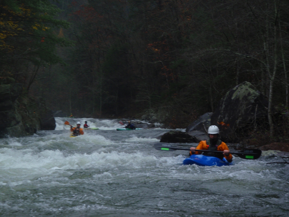 Once on the water, you get a junky boulder garden which is very reminiscent of the rapids downriver. If the put-in rapid treats you badly, I would walk off. Downriver awaits many more rapids just as big if not bigger. Below the put-in rapid is a great boof which then boogies quickly down to the main event, Oceana. What a fun drop... possibly the biggest, most intimidating class IV rapid I have ever seen... of course, with 700 cfs it was more of a class IV+ thanks to the hole at the bottom and a much larger "Thing." Downriver, the drops keep coming, a few have huge holes that are easily avoided while others have multiple move boulder gardens or bedrocks ledges and slides that will keep you smiling through the remainder of the run. When possible, try to remind yourself to look up and around as the scenery is quick spectacular too. Tall cliff faces surround you amidst the densely packed forest. And it probably goes without saying, but those cliffs also lock you into the canyon... the only way out is on the water, no hiking out or egressing back up river.