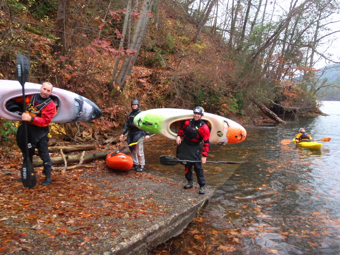 Take-out: From Tallulah Falls, Georgia, head south on Highway 15/23/441. Just on the far side of town, turn left on Tallulah Gorge Scenic Loop and quickly turn right on Tugalo Village Rd. Follow this about 5 miles to the parking at the bottom. Be aware, they close the gate near the bottom at 5 pm.