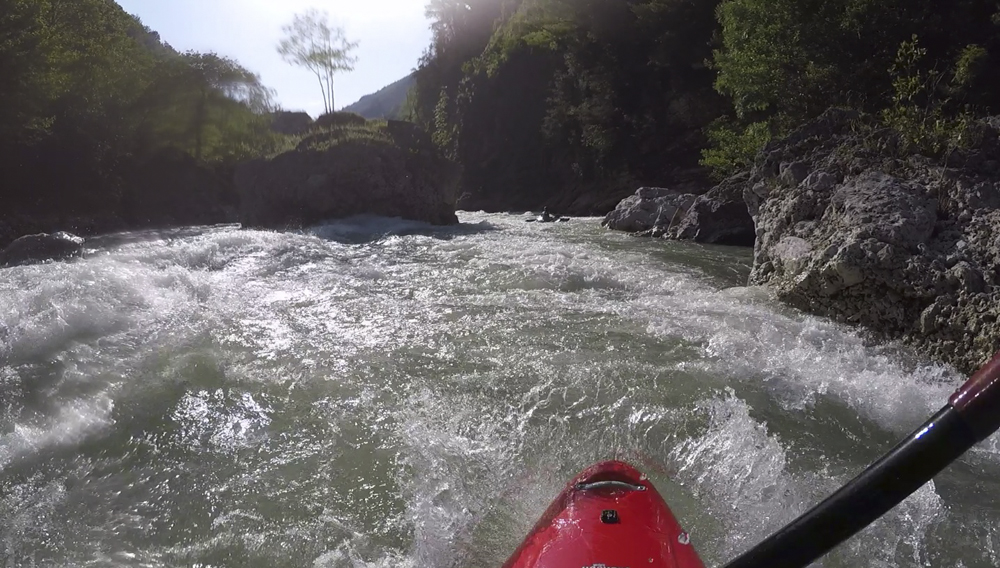 Interior (IV). The walls open up slightly, still totally gorged though, and you enter a long rapid where the river bends right and hits the left wall, it is read and run, avoid any holes. This then dumps you off in a super beautiful walled out mellow gorge before it opens.