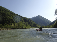 Putting on the water, we were greeted by fluffy class IV-ish water that was continuous in nature. The crux of the upper half is just after the first bridge. Eventually, the mountains open up into a valley and some mellow white water takes you down to the start of the gorge in the lower portion of the run. The gorge is indicated by crossing under a second bridge. Here, the walls tighten and you enter a walled out gorge with one significant drop that probably should be scouted your first time as if you follow the flow you would find a rock buried in the drop. Scout left. Below, you enter a beautiful canyon with a few small rapids before the canyon again opens up, this time to the farming plains. Now you float to wherever you arranged take-out.