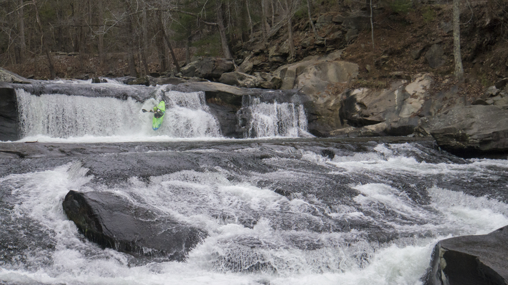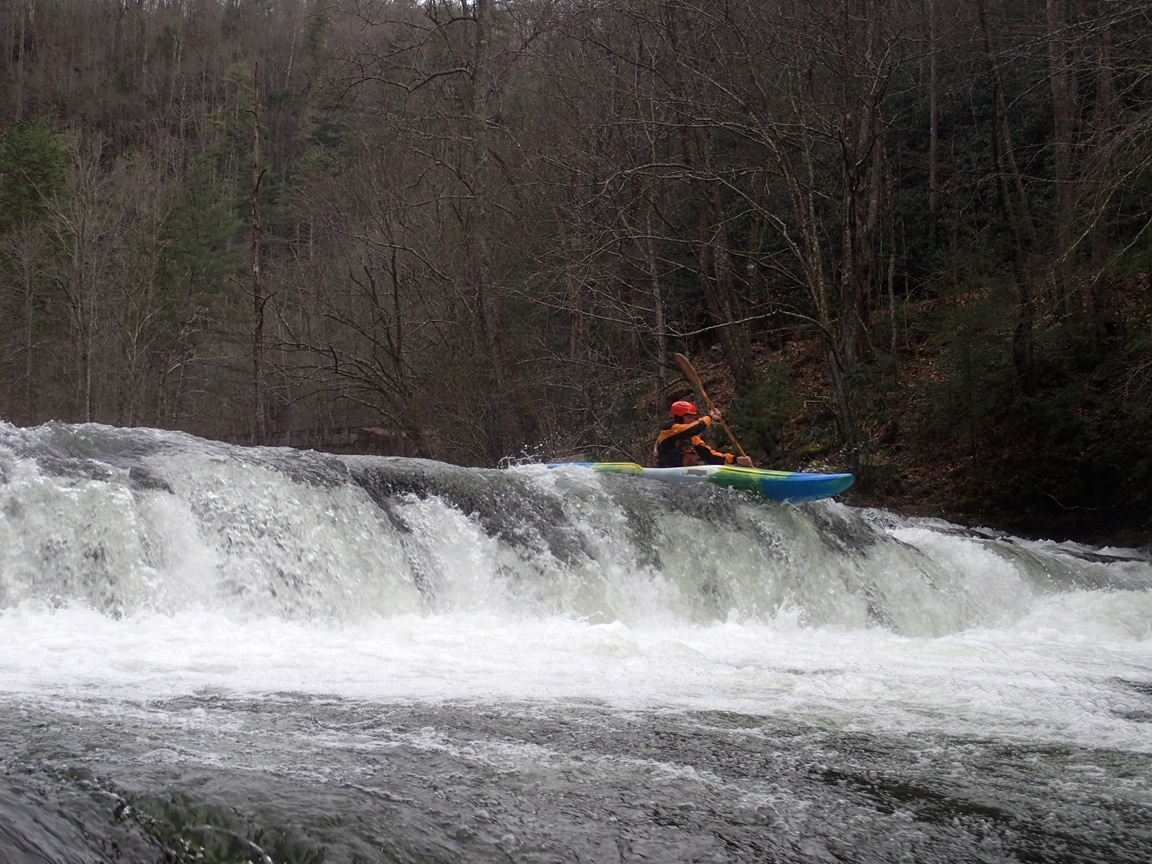 - Middle Ledge (III-). Middle ledge was straight from a pool. We ran right of center off a nice kicker which set easy boofs. At the low flow we also ran it backwards. With more water there is also a left channel line, hug the right side of the left channel for another nice boof. Landing is shallow there so more water is better.