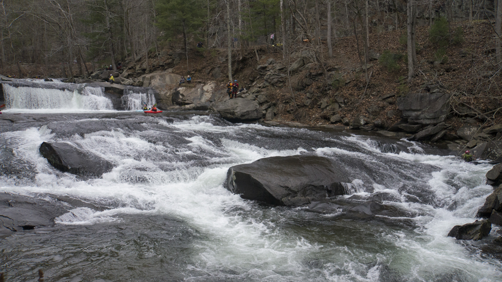 - Jared's Knees (IV). The river saves its hardest for last. This is a long multi move rapid with some great boofs. We started left and then ended up running down a ramp. With more water there is a good boof to exit on the far left, but at the low flow I preferred moving back to the far right to exit. The take-out bridge is then in-sight. At high flow, be mindful of the bottom hole as swims there are common. It is important to get some of the rock to boof off of rather than hugging the left shore.