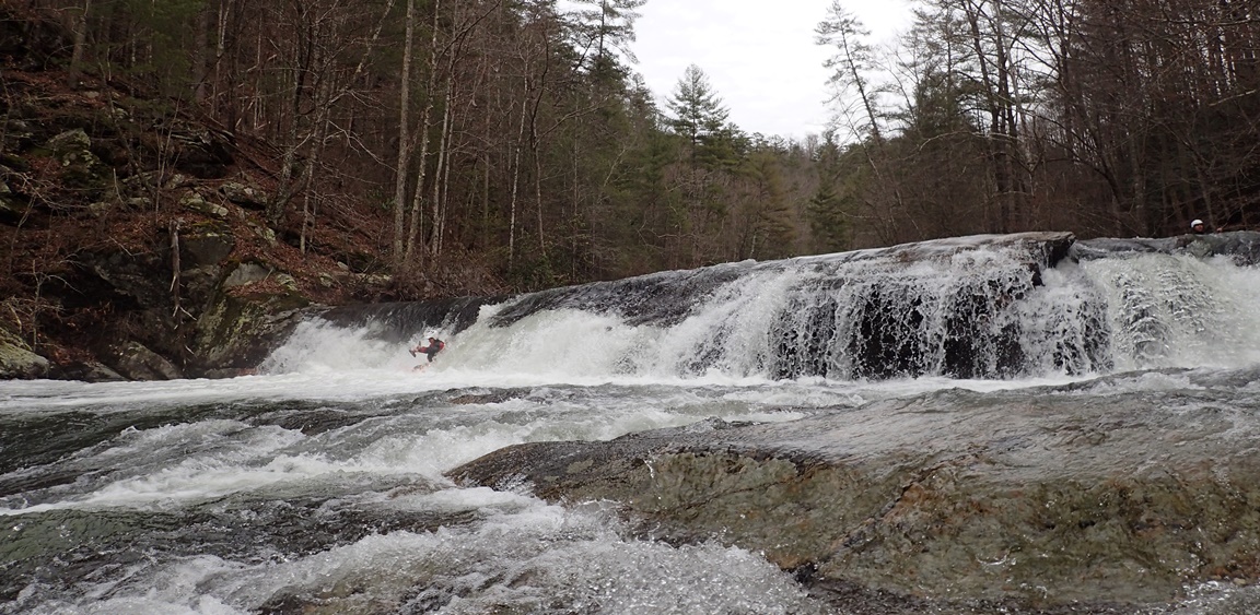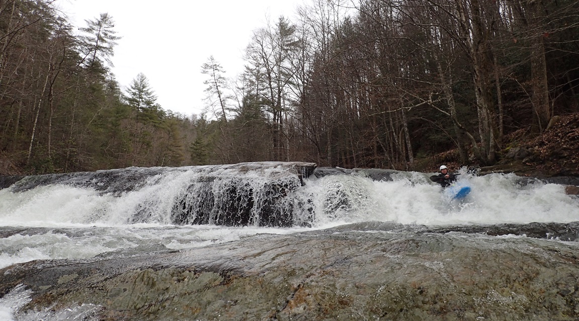 Baby Falls (III+ to IV-). We entered far right and moved back to the left to boof the main spout of water. There is also a line on the far right that is the high water line. Portage on river left if so inclined. The falls is maybe 10 feet tall.