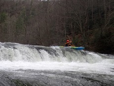 The Tellico is a classic and a staple of the Tennessee boating community. Each winter, once it gets charged it tends to run (at some level) of just about the entire season. My first day here was a desperation day. I hadn't boated in 3 weeks and was about to head off on 2 weeks of business trips followed by a trip home to California for the holidays. With my desire to get 50 new runs this year my window was closing, so #49 was a very low (1.4') Tellico day in the morning prior to a Thanksgiving feast with friends.