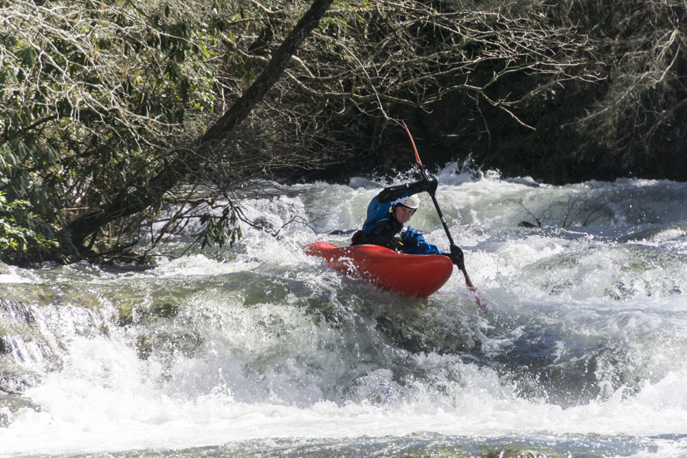 Perhaps the reason people don't do section often is that you need higher water to make it more entertaining. At the low flows that we run the Tellico at often, this section would be scrappy for sure. We had 4.2' on the gauge and I thought that was a great flow for the big rapid. It felt like a 1.9' Jared's Knee level... in fact that is just an overall great comparison. If you like Jared's Knee... you might think of coming up and running this sometime. Plus, if the water is nice, you can run the Upper Upper Upper as well.