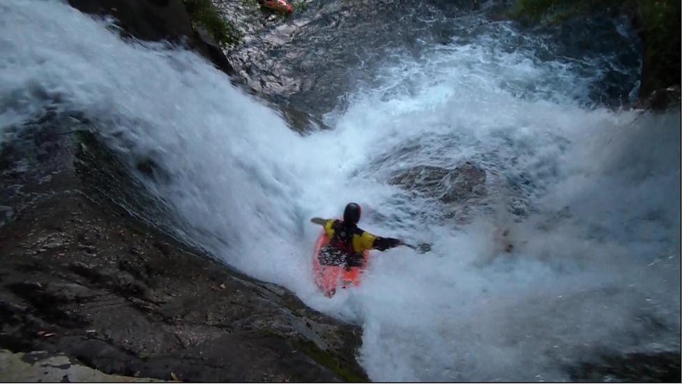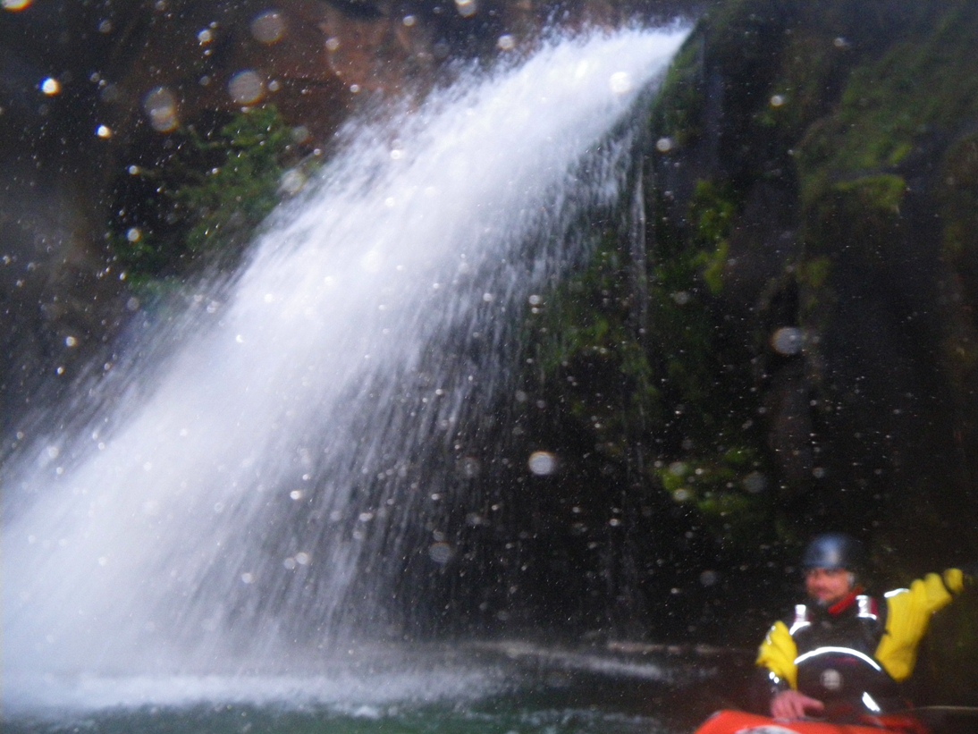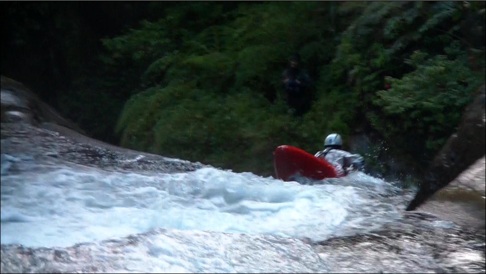 Third Falls (IV+). It looks big, it looks intimidating, but in reality it is a zero move waterslide. Just enter and hold on. If it decides it wants to corkscrew you, there is nothing you can do by try to throw a kickflip. We all were treated fairly by it and landed upright. Use the rope that you set before starting down the river to climb up and out of the gorge just below before the next falls.