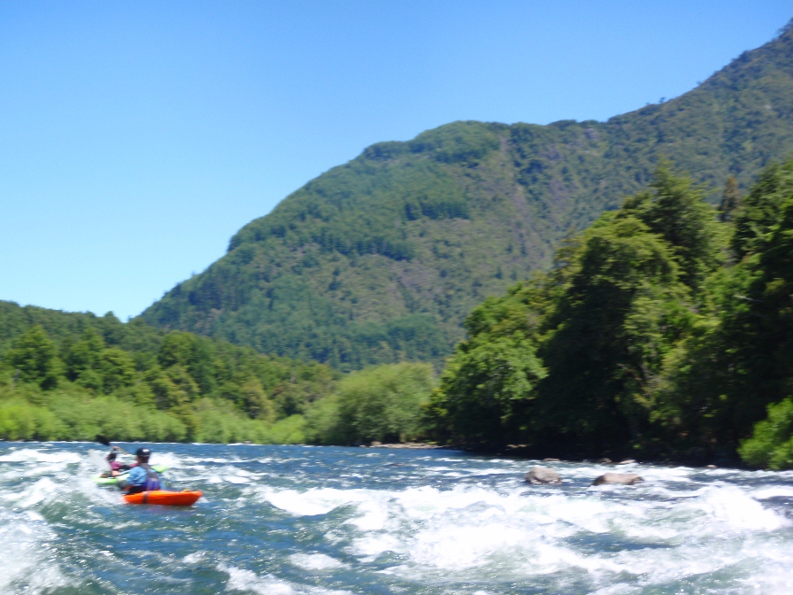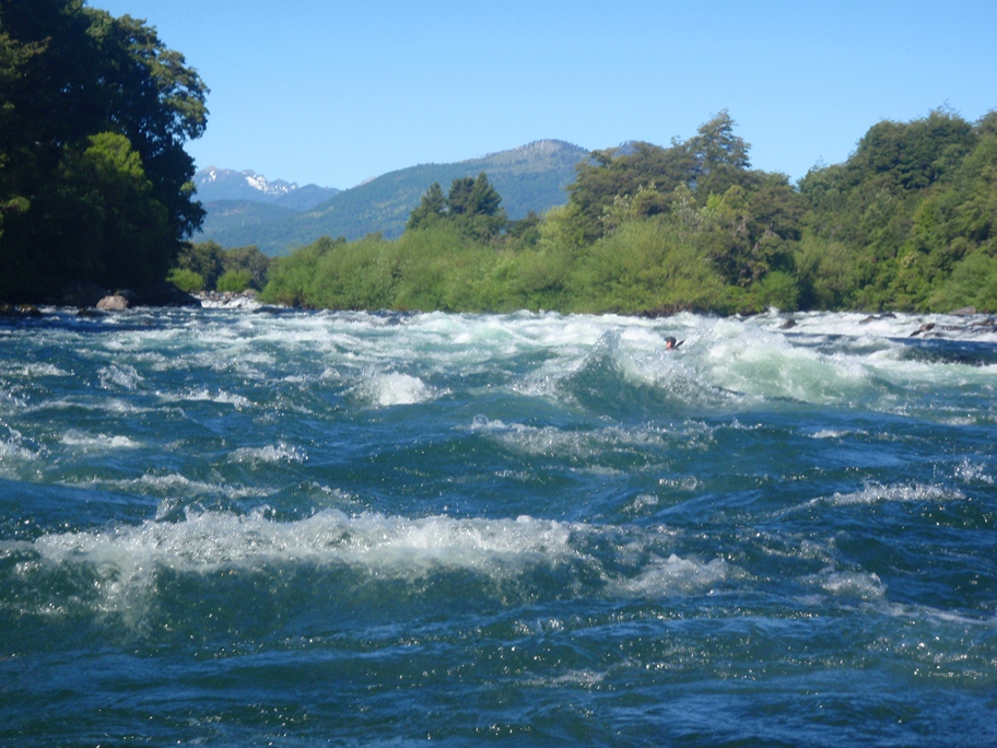 So anyways, in this river, most of the rapids are class II-III. There are maybe 3 that standout as harder. The first is above the confluence with the Rio Liucura. After a long class II the river bends right and falls through several large waves and makes a near 90 degree turn left. The key is to be heading left here as 50 feet downriver of the river right wall is a massive low angle hole on the river right that would surely cause a swim. The next big rapid is at the confluence and consists of big waves for a big hoot. The final rapid is just a long bolder bar affair that ends in a shoal. Although this run will not get the class V gnar boater's heart racing, it is fun in a playboat and its views alone make it a worthwhile trip on a rest day.