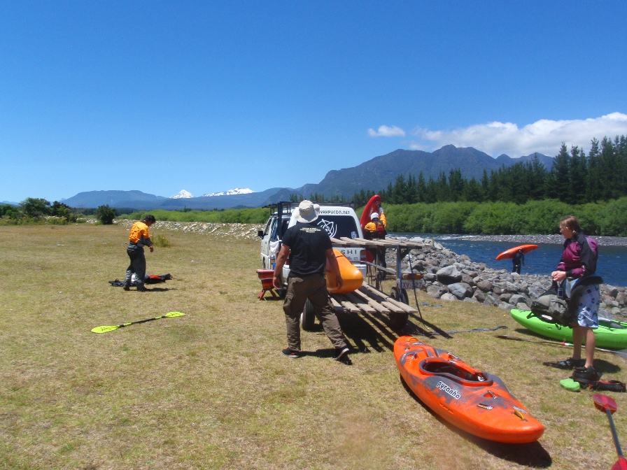 Take-out: Head out of Pucon on Camino Internacional. Just before the airport turn left on Pje Quelhue and follow a mile or so to the bridge over the river. Kayakpucon used a different take-out a few hundred yards downriver and I have no idea how to get there. Nothing was gained whitewater wise...