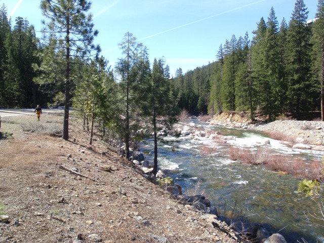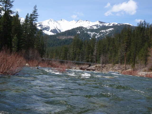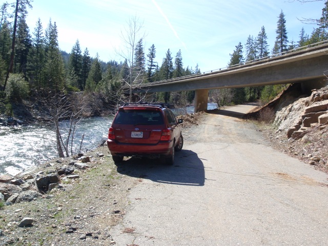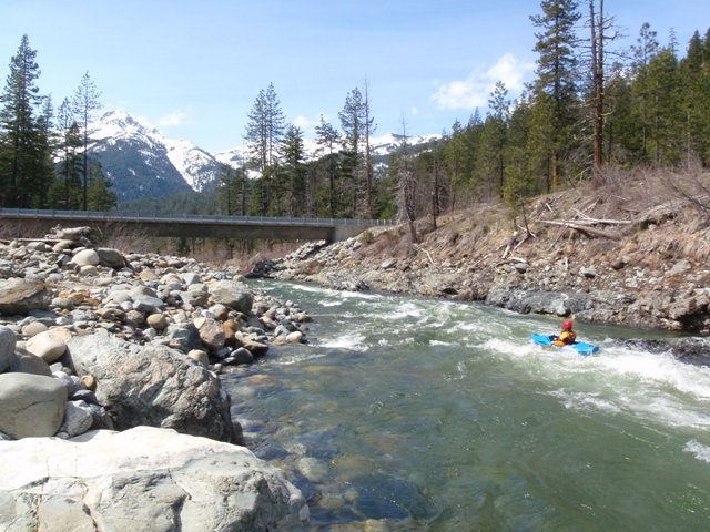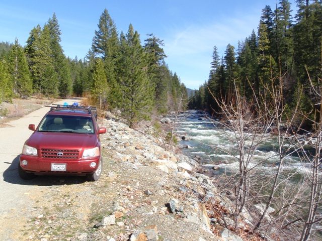 Take-out: On Highway 3, travel ~45 miles from Weaverville to Coffee Creek. Keep going 2 miles past the creek, you will cross two bridges. Just after the second bridge you will see Derrick Flat road on your right. Take it and park near the bridge.