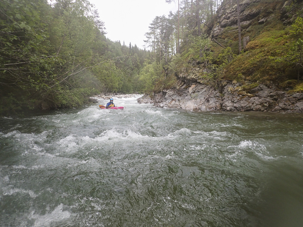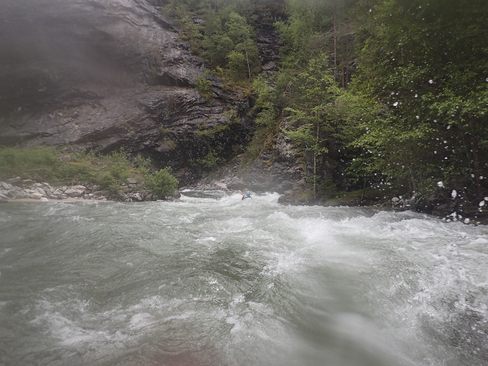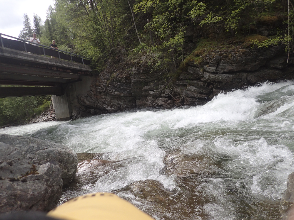 Take-out: From the confluence of the Sjoa and the Lågen, head up the Sjoa on 257 for 12.8 km. Just after you drive past the obvious gorge section upstream of the rafting companies, look for a bridge on your left. This is take-out.